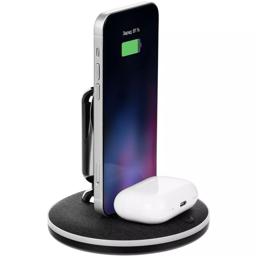 Универсальная станция предназначена для зарядки любых смартфонов и наушников с поддержкой беспроводного заряда, включая модели Samsung и Huawei.