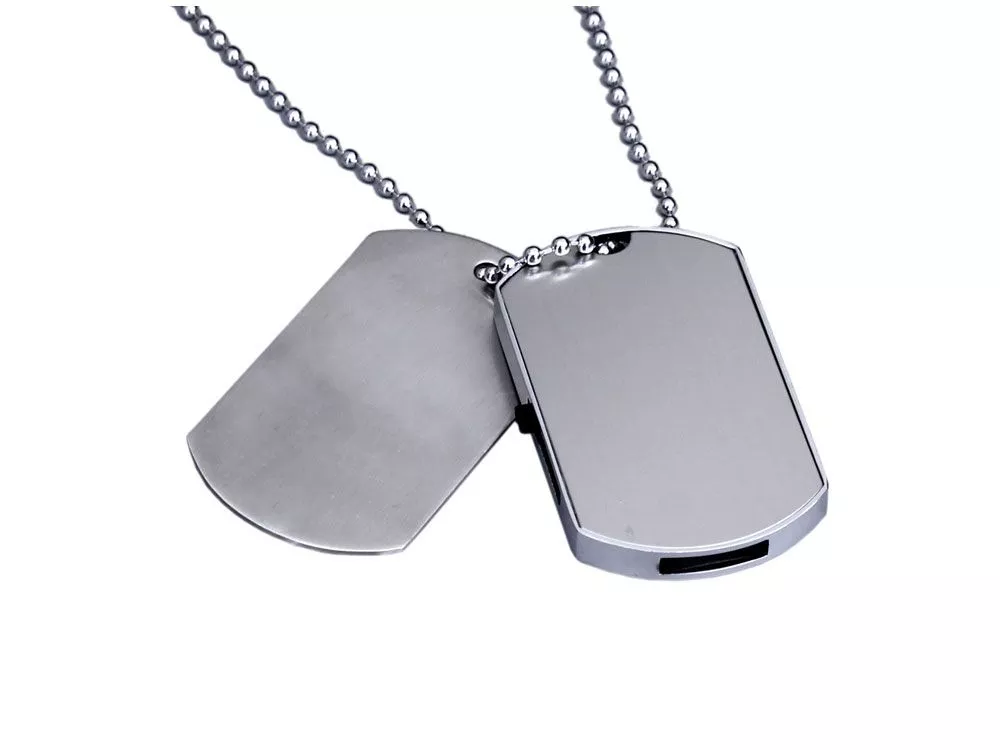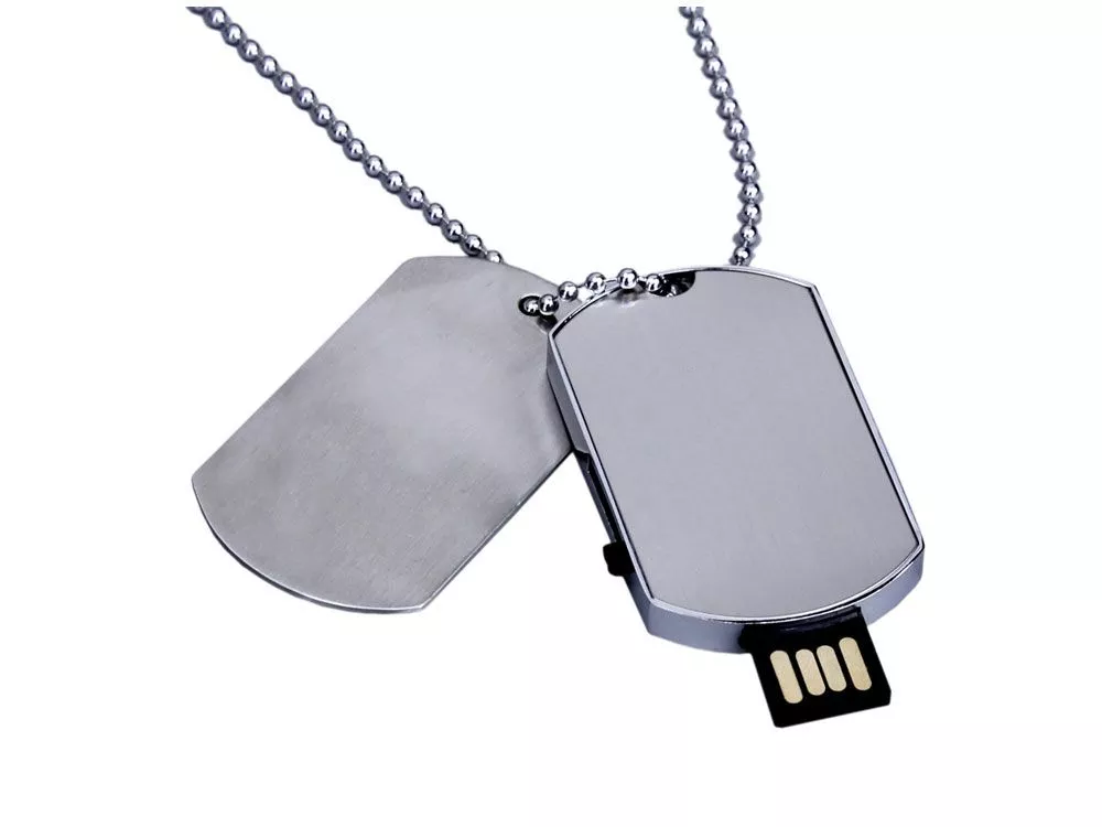 Металлическая флешка в форме армейского жетона. Длина цепочки 65 см. Отличный и полезный подарок на 23 / 14 февраля или день рождения парню, мужу, сыну, коллегам, друзьям и сослуживцам. Оригинальная подарочная флешка, подходит для нанесения логотипа и гравировки. Можно приобрести оптом. Доступные объёмы 512 MB, 4 GB, 8 GB, 16 GB, 32 GB, 64 GB, 128 GB Интерфейс: USB Type-A. Чип: Sandisk. Скорость USB 2.0: Чтения 18 Мб/с. Запись 8 Мб/с. Внимание: объем флешки может отличаться от заявленного, из-за того, что для чипов 1 КБ = 1000 Б, а не 1024. В итоге флешка на 128 Гб покажет 117 Гб. Это характерно для любых объемов и накопителей. Гравировка (оптоволоконный лазер) (Без чернения) на данный товар осуществляется бесплатно. Оплачивается только настройка оборудования в размере 1100 рублей на весь тираж.