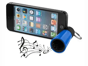 Удобная подставка для медиаустройств со встроенным усилителем звука и металлическим кольцом для ключей. Совместима с устройствами серии iPhone®.