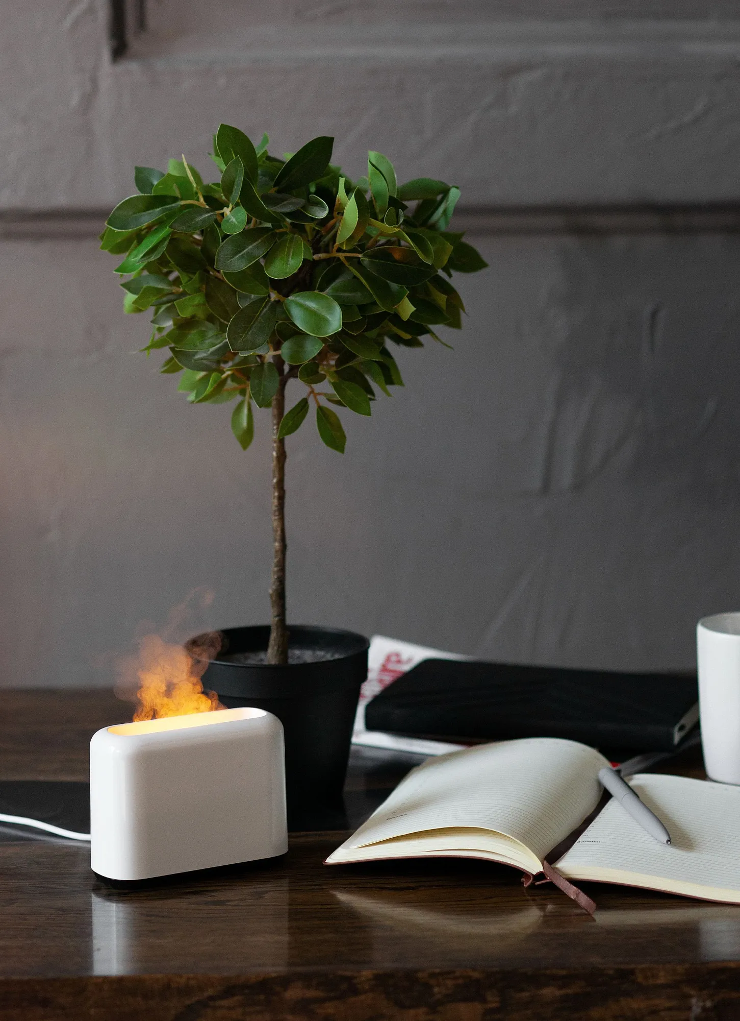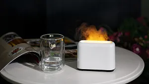 "Flame" - словно огонь в вашем интерьере, придающий ему особый шарм и уют. Благодаря своей компактности он легко помещается на предметах домашней мебели или на рабочем столе, не занимая много места, но при этом эффективно увлажняя воздух в помещении.