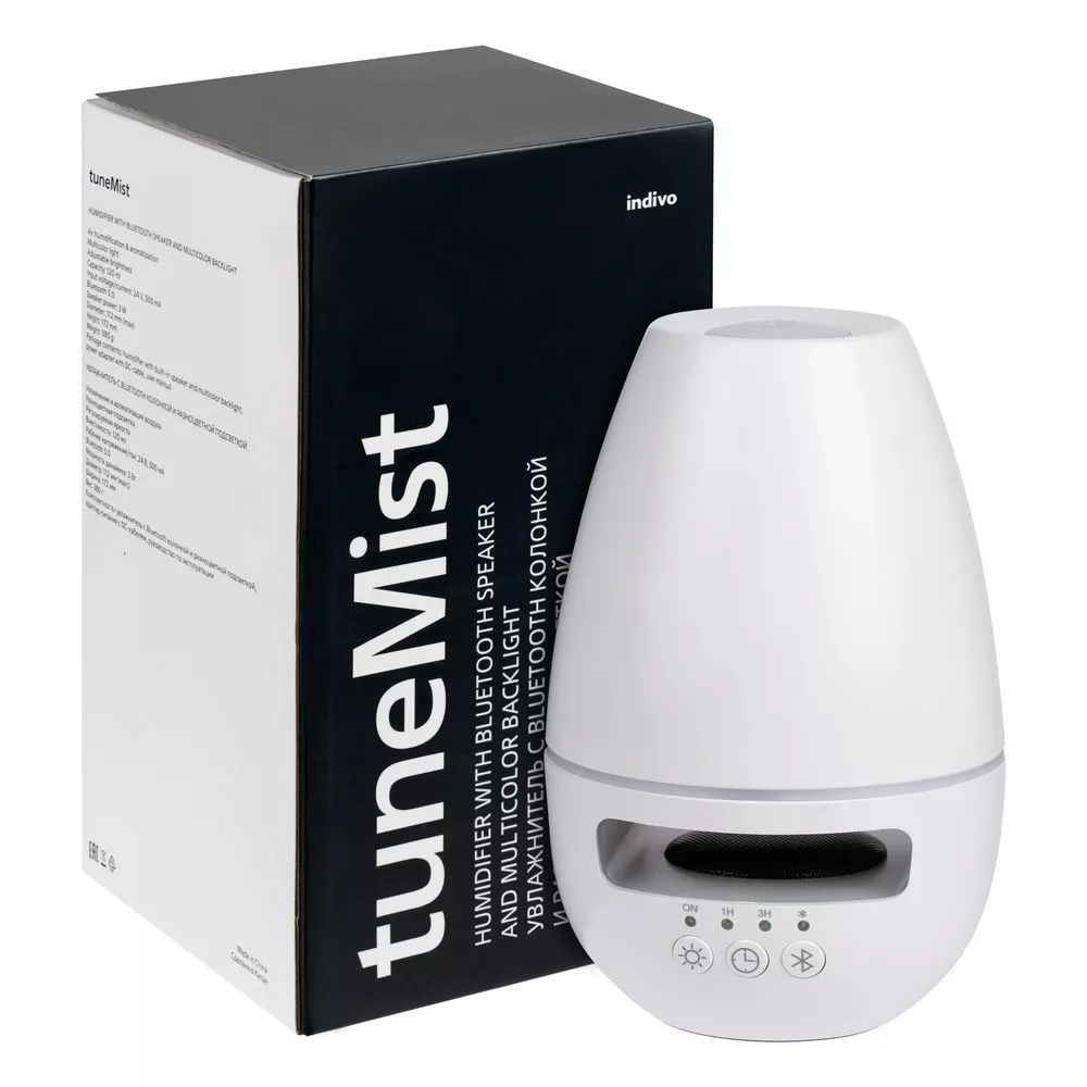 tuneMist — многофункциональный гаджет, который сочетает функции увлажнителя воздуха, беспроводной колонки и декоративного настольного светильника.