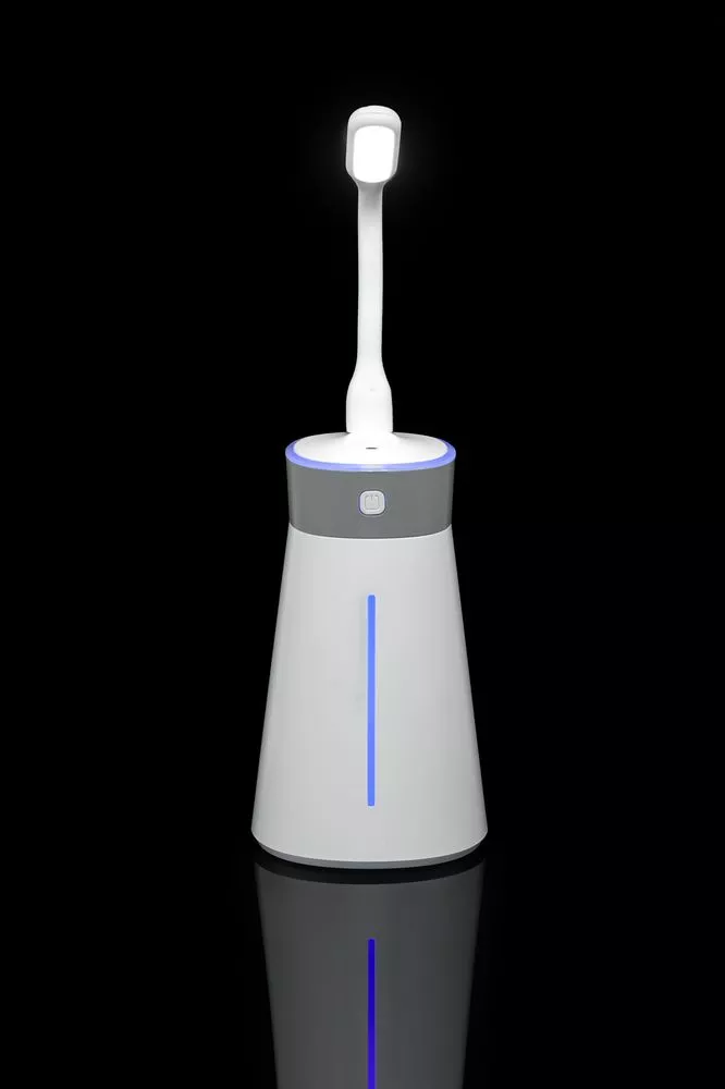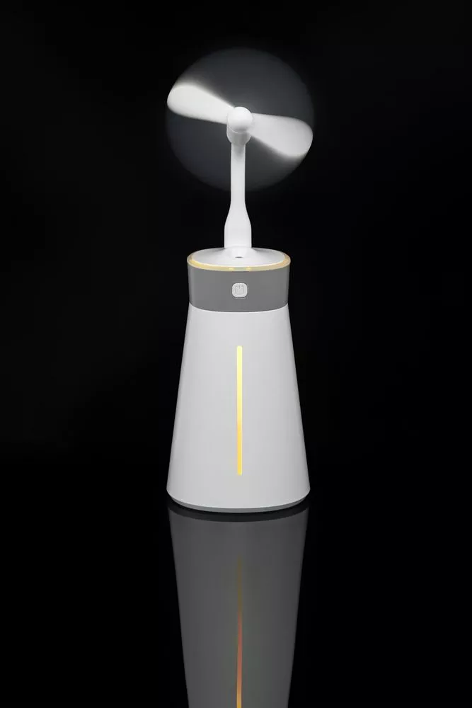 Увлажнитель airСan насыщает влагой воздух в помещении, обеспечивая комфортную и здоровую среду в течение всего рабочего дня. Благодаря компактному размеру его легко разместить на рабочем столе.