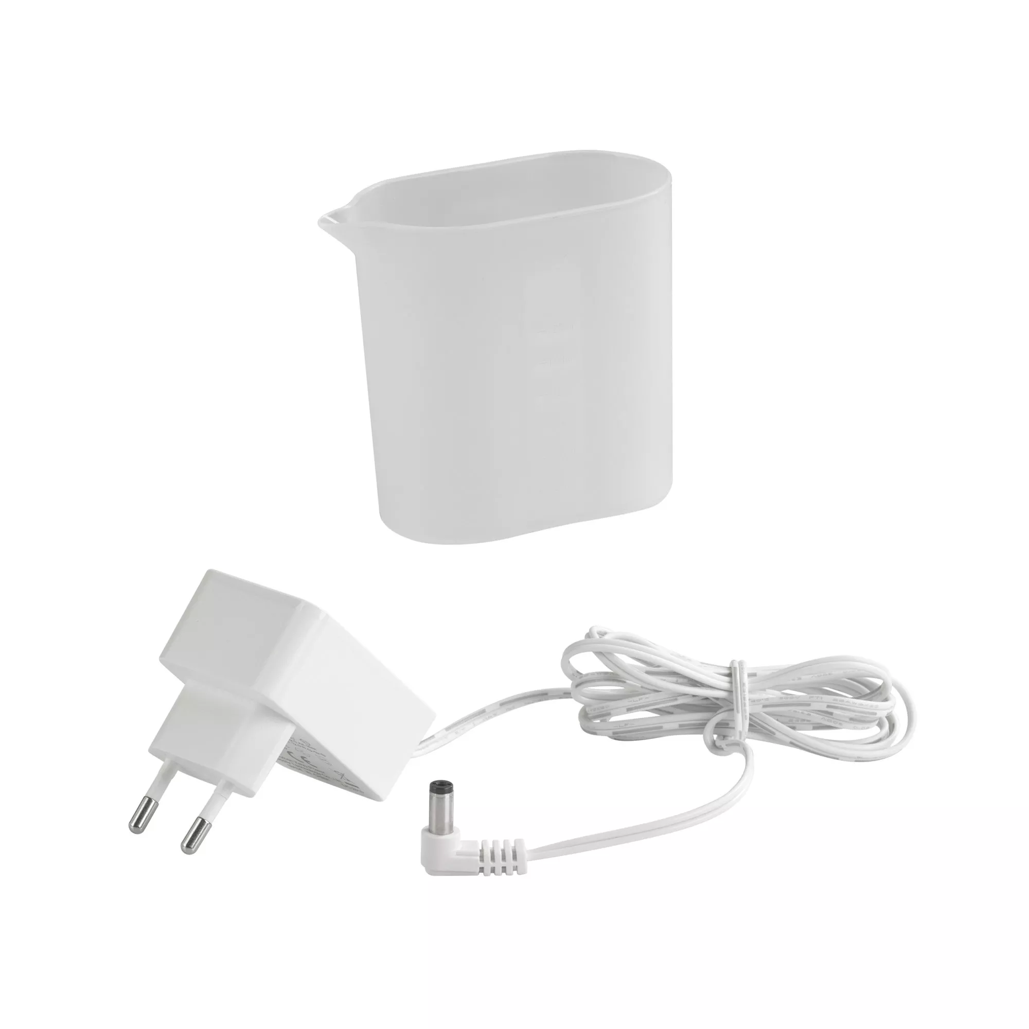 В стильном эргономичном корпусе белого цвета он вмещает 500 мл воды, - этого объёма хватает до 4х часов непрерывной работы. Кроме того, он поддерживает многоцветную Led подсветку с разной степенью интенсивности, что позволяет использовать его как ночник.