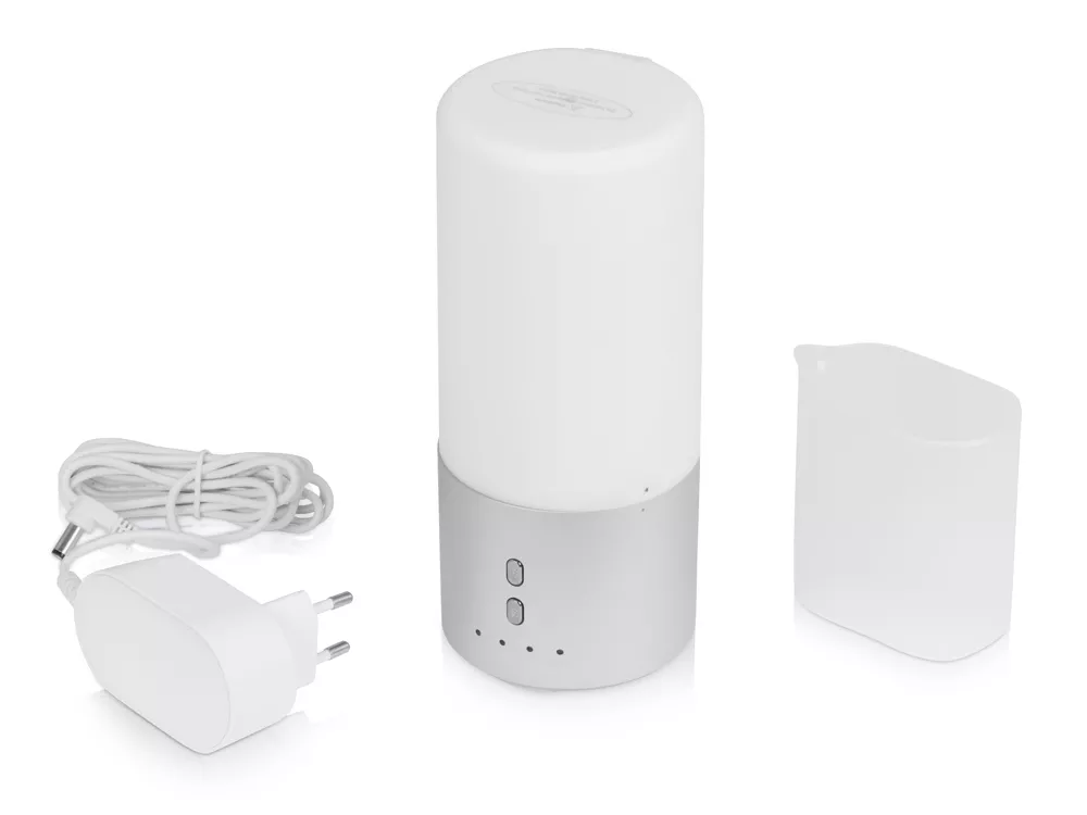 Портативный увлажнитель воздуха Breathe – функциональное решение для создания комфортного микроклимата, где бы вы ни находились: дома, в командировке, на даче. Это прекрасный выбор для тех, кто заботится о своем здоровье и коже лица. • После включения увлажнитель моментально насыщает воздух влагой. • Устройство способно работать в 4-х режимах: генерировать постоянное увлажнение, перерывное – с включением/выключением каждые 30 секунд, а также по заданному интервалу времени – таймер на 60 и 120 минут. • Основная функция – увлажнение воздуха, дополнительные – использование в качестве аромолампы при добавлении масел в воду и ночника благодаря светодиодной подсветке. • Органично смотрится в любом интерьере благодаря элегантному дизайну в бело-серебристых цветах. • Благодаря компактным размерам не занимает много места в багаже и не вызывает трудностей при транспортировке.
