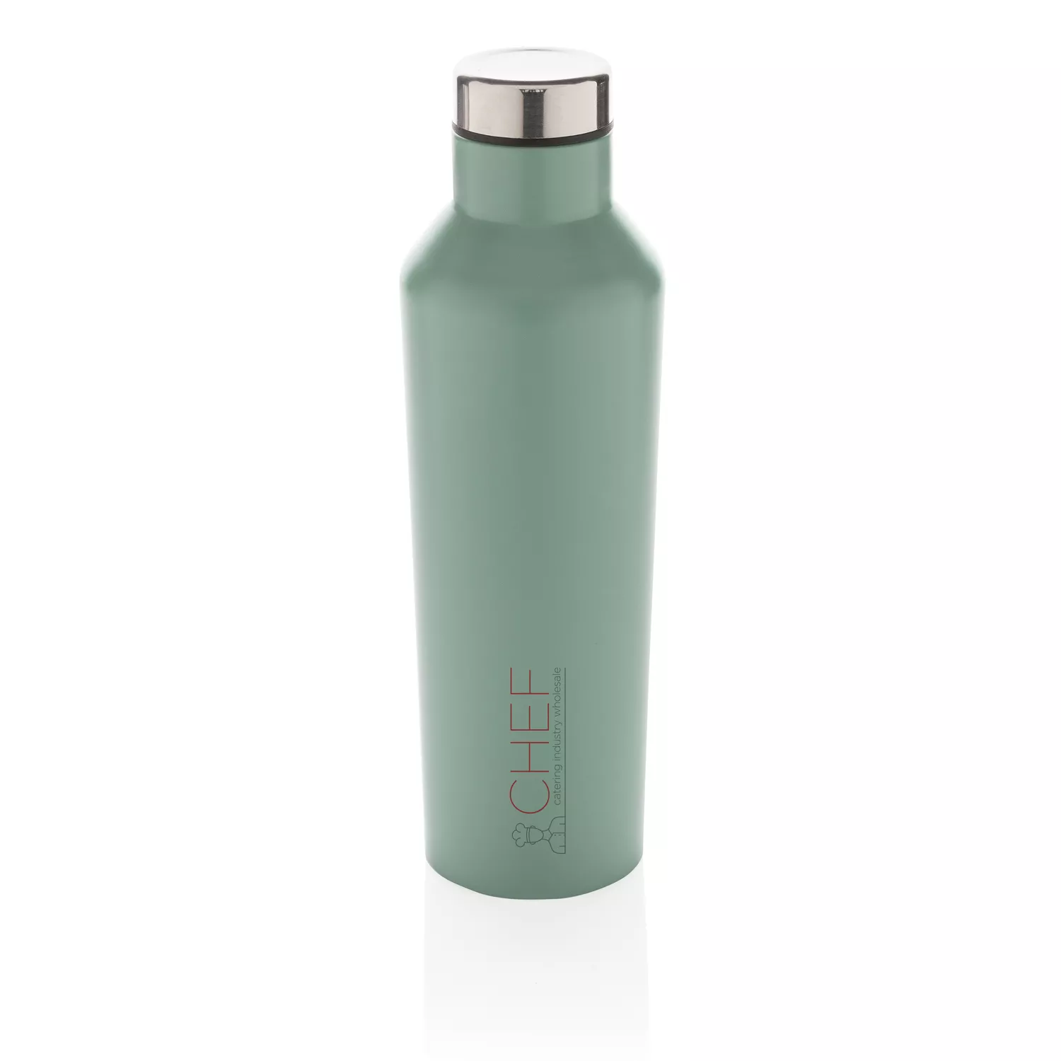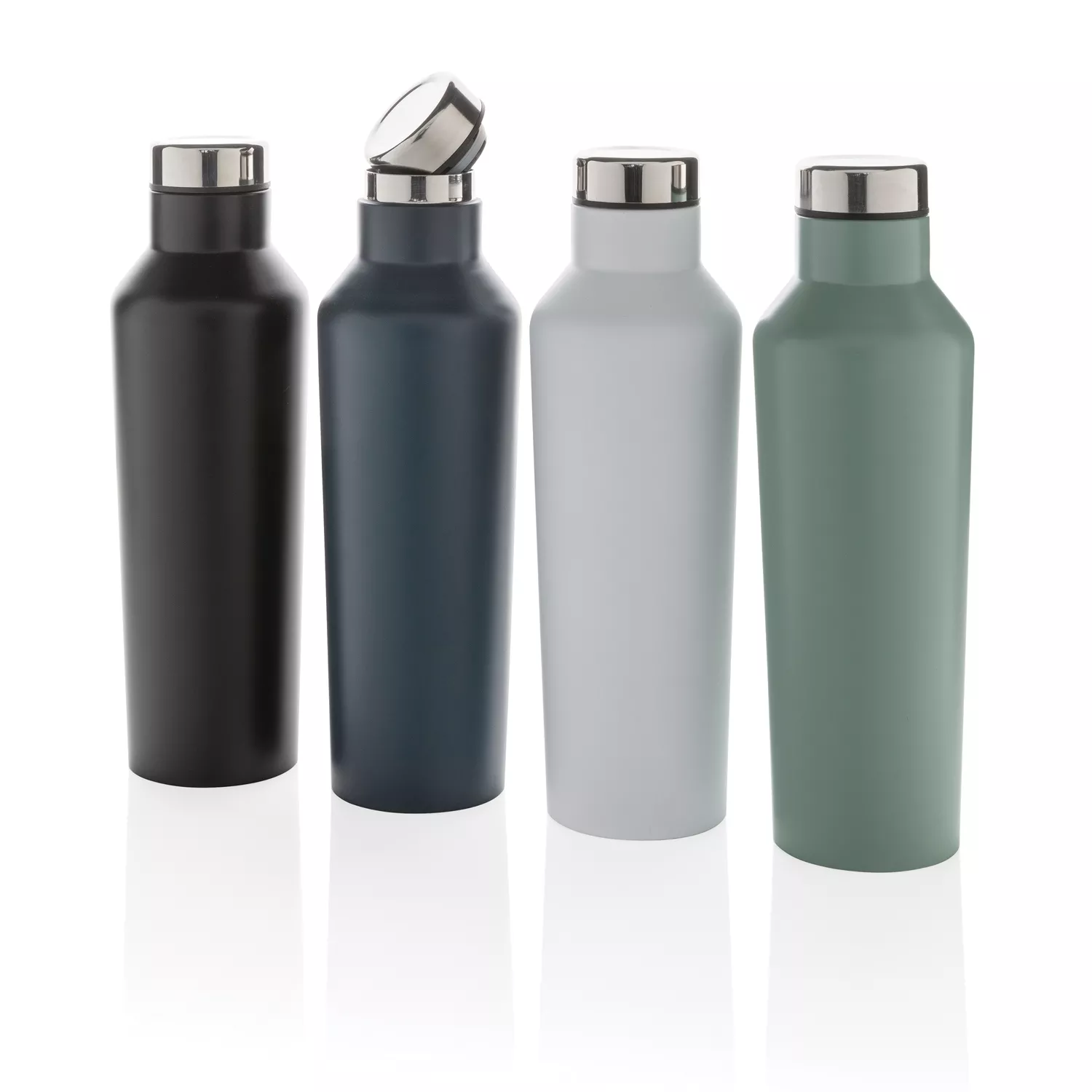Современная вакуумная бутылка из нержавеющей стали с уникальным дизайном. Сделана из высококачественных материалов и оснащена герметичной крышкой. Способна сохранять напитки холодными до 15 и горячими до 5 часов. Не содержит BPA.