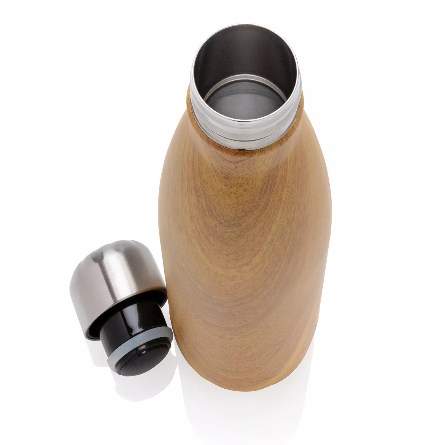 С этой вакуумной бутылкой из нержавеющей стали и принтом под дерево вы точно не останетесь без внимания. Позволяет сохранять напитки холодными до 15 часов и горячими до 5 часов. Объем 500 мл. Не содержит BPA.