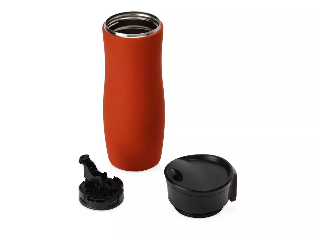 Термокружка эргономичной формы из качественной долговечной стали с покрытием soft-touch и герметичной крышкой. Крышка имеет специальную конструкцию, благодаря которой пользоваться термокружкой удобно даже одной рукой. Чтобы попить просто нажмите и удерживайте кнопку, если отпустить – крышка автоматически заблокируется. Подходит для горячих и холодных напитков. Объем 400 мл. При использовании с горячими напитками под крышкой может накапливаться пар под давлением. При первом нажатии кнопки, чтобы выпустить пар, держите термокружку вертикально и на безопасном расстоянии от лица. - Удерживайте кнопку, чтобы попить. Отпустите - чтобы крышка автоматически заблокировалась. - Герметичная крышка. - Пищевая долговечная сталь марки 304. - Двойные стенки с вакуумной изоляцией. - Сохраняет тепло до 8 часов. - Покрытие soft-touch. - Эргономичная форма. Трафаретная печать круговая (1 цвет (цветные изделия)) на данный товар осуществляется бесплатно. Оплачивается только настройка оборудования в размере 5700 рублей на весь тираж.