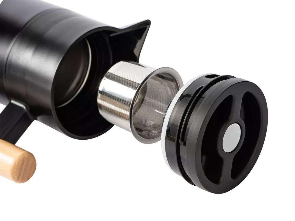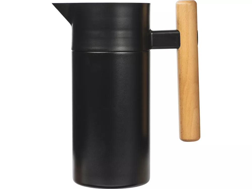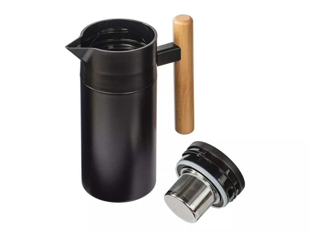 Вакуумный термокувшин черного цвета, подходит для чая и кофе. Сохраняет температуру в течение 24 часов благодаря двойным стенкам с вакуумной изоляцией. Съемное ситечко из нержавеющей стали можно мыть в посудомоечной машине, а деревянная ручка термопота делает его использование особенно удобным и безопасным. Объем термочайника — 1200 мл, этого хватит на 4 обычных чашки чая. Кофепот производится премиальным брендом Eat&bite Select — предметы этой марки отличаются лаконичным и продуманным дизайном, который легко впишется в любую кухню. - премиальный дизайн - подходит для чая и кофе - удобная деревянная ручка - вакуумная изоляция - съемное ситечко можно мыть в посудомойке - непроливайка Гравировка (CO2 лазер) (Без чернения) на данный товар осуществляется бесплатно. Оплачивается только настройка оборудования в размере 1000 рублей на весь тираж.
