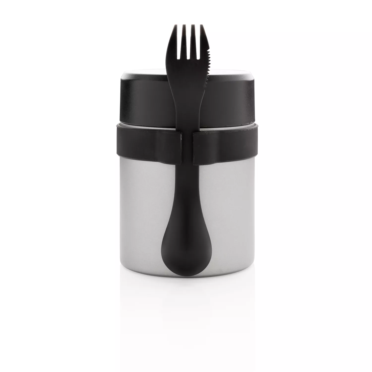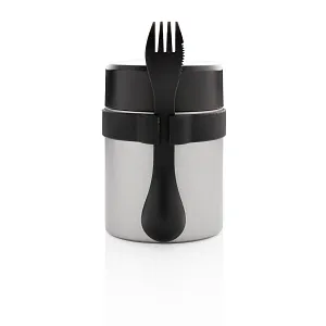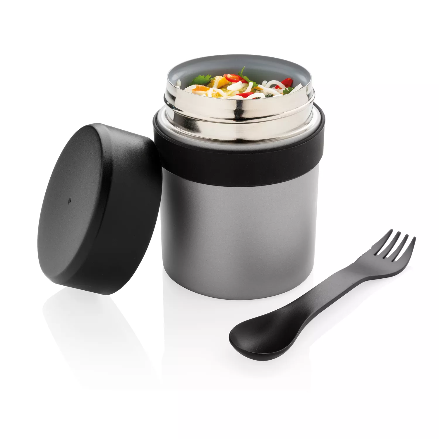 Наслаждайтесь свежей едой без посторонних привкусов и запахов с новым вакуумным термосом для еды Bogota с керамическим напылением. Он сохранит температуру горячих блюд до 5 часов, холодных — до 15 часов. На всю внутреннюю стенку термоса нанесено керамическое покрытие, чтобы вы могли наслаждаться едой без металлического привкуса. Крышка с защитой от протекания. В комплекте со столовым прибором вилка-ложка-нож 3 в 1. Объем: 400 мл. Зарегистрированный дизайн®