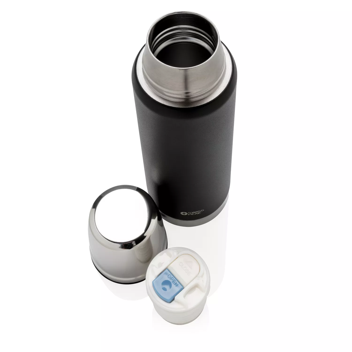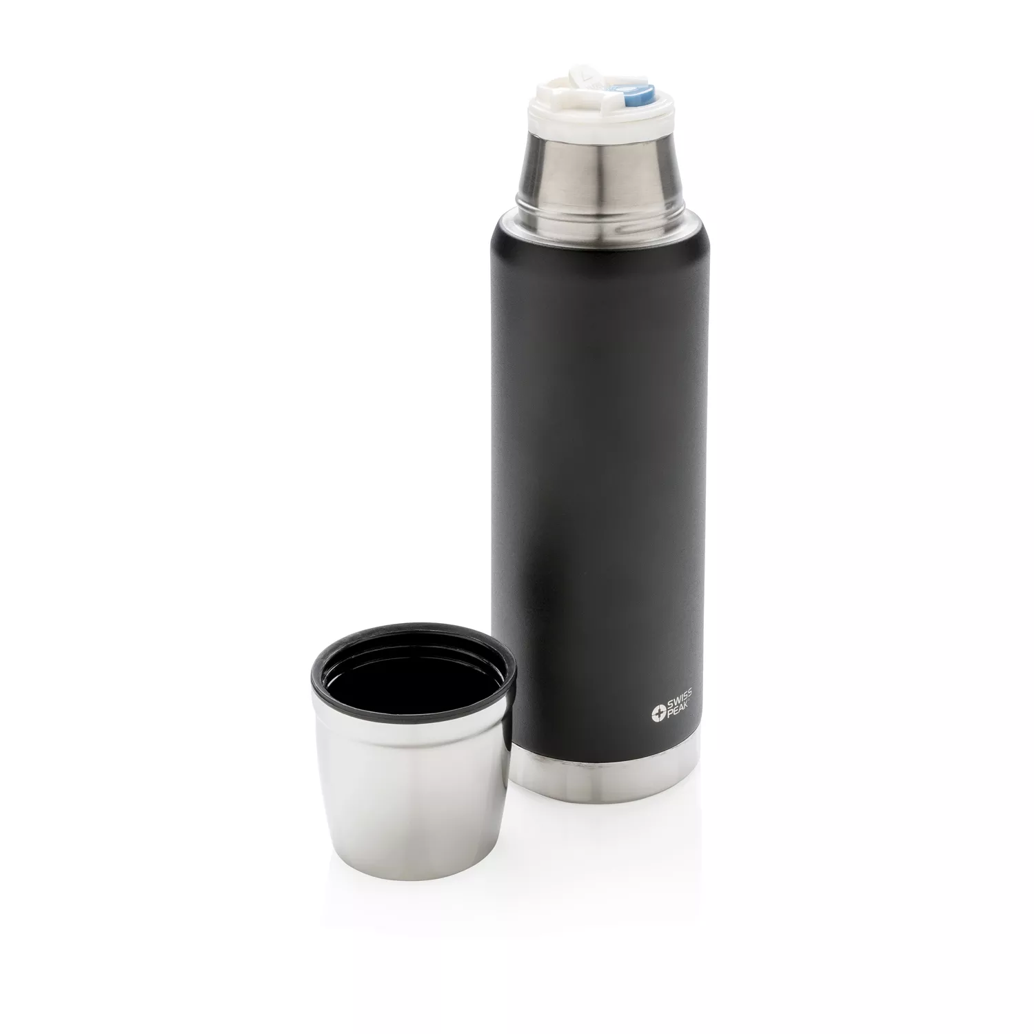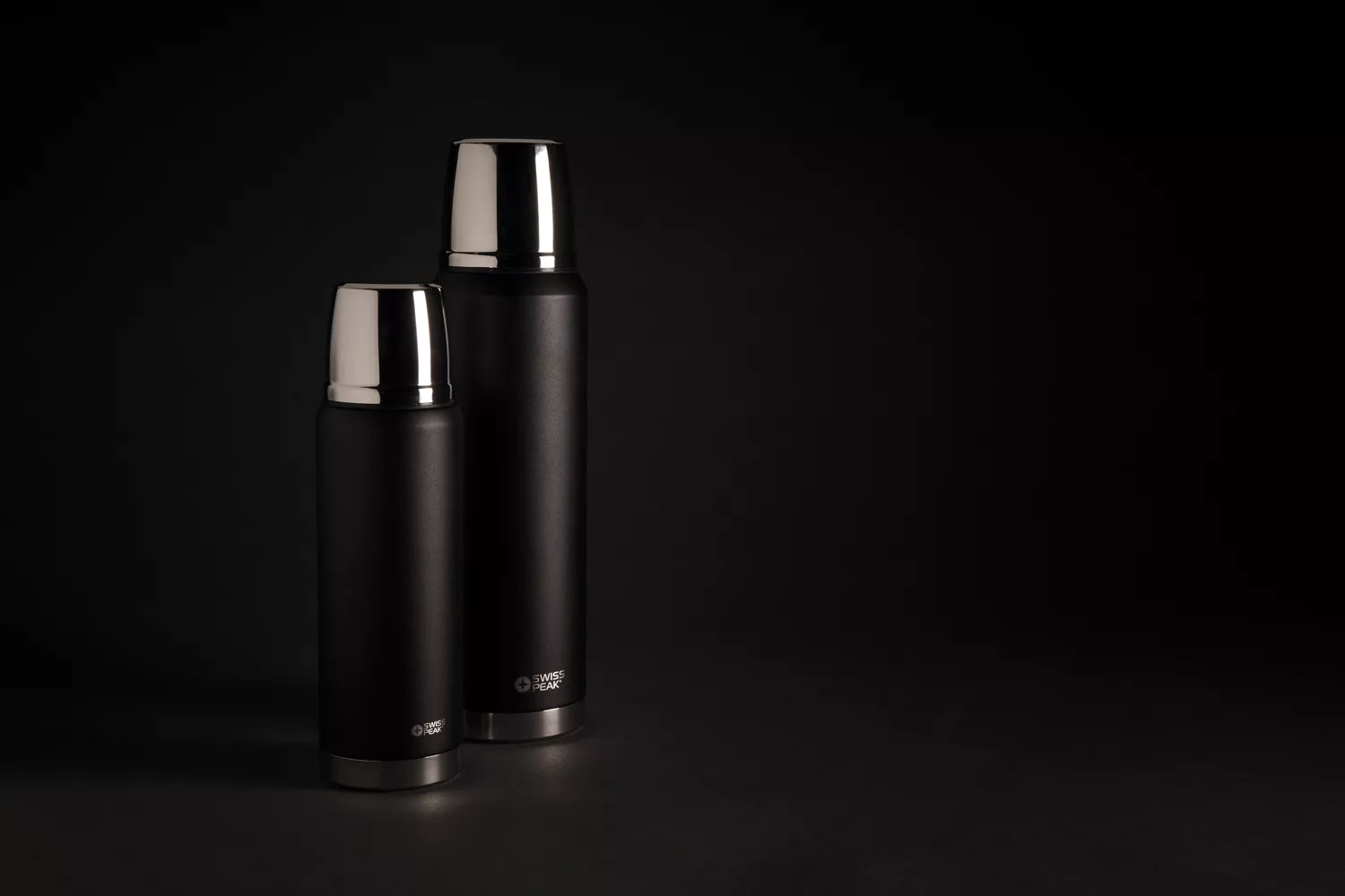 Коллекция Swiss Peak Elite с вакуумной изоляцией и двойными стенками из нержавеющей стали 18/8. Долговечное внешнее покрытие черного цвета, которое не облезет и не потрескается. Внутренние стенки покрыты медью, что обеспечивает максимальную проводимость для того, чтобы напитки сохраняли тепло до 8 часов или оставались холодными до 24 часов! Ручная мойка, защита от протекания. Объем 500мл.