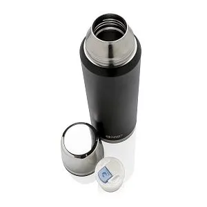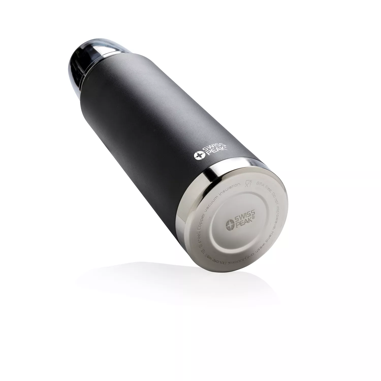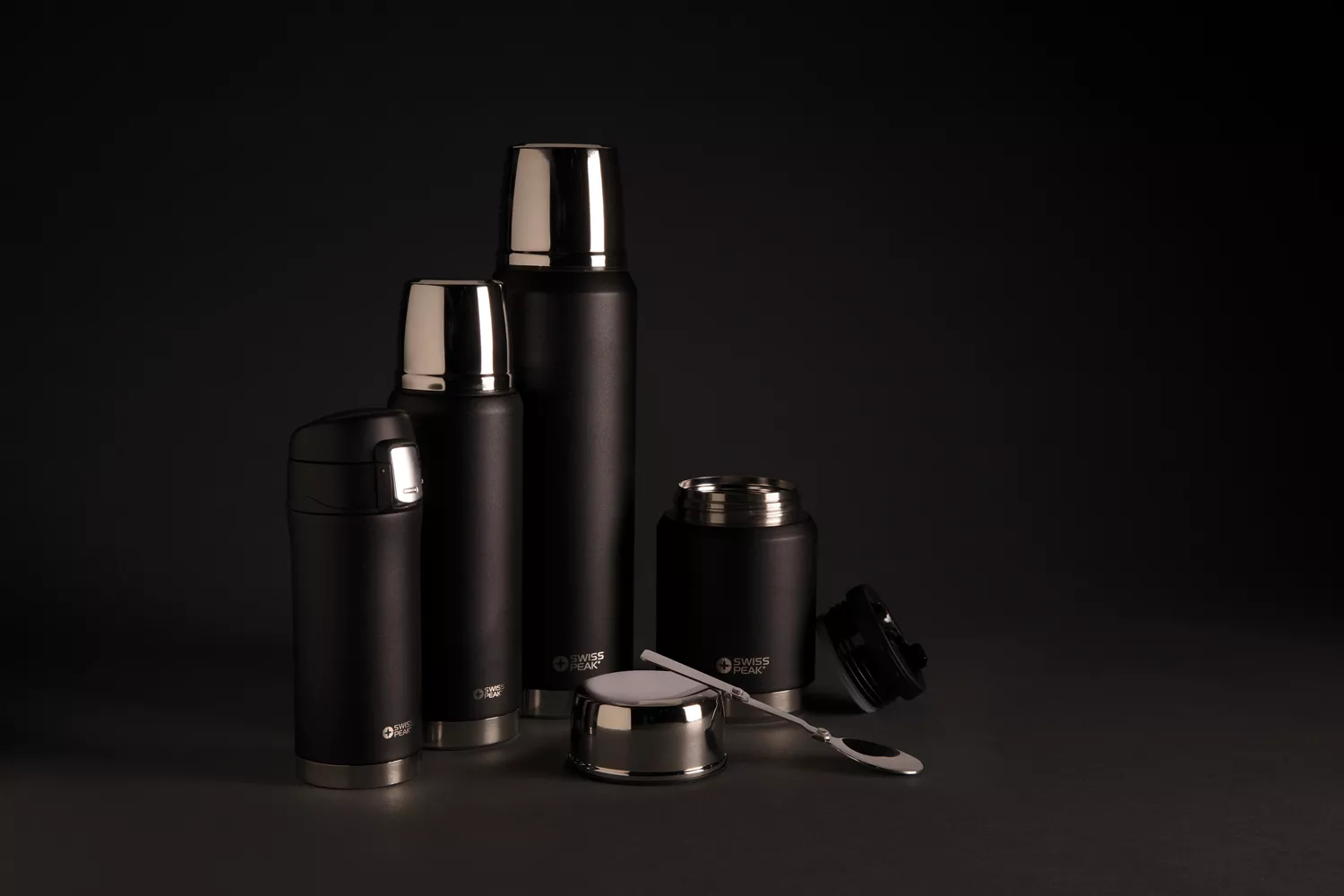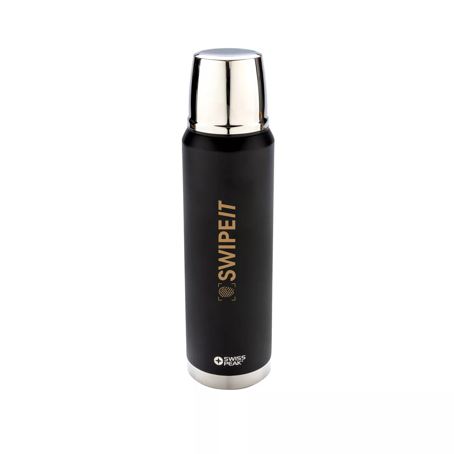 Коллекция Swiss Peak Elite с вакуумной изоляцией и двойными стенками из нержавеющей стали 18/8. Долговечное внешнее покрытие черного цвета, которое не облезет и не потрескается. Внутренние стенки покрыты медью, что обеспечивает максимальную проводимость для того, чтобы напитки сохраняли тепло до 8 часов или оставались холодными до 24 часов! Ручная мойка, защита от протекания. Объем 1000мл.