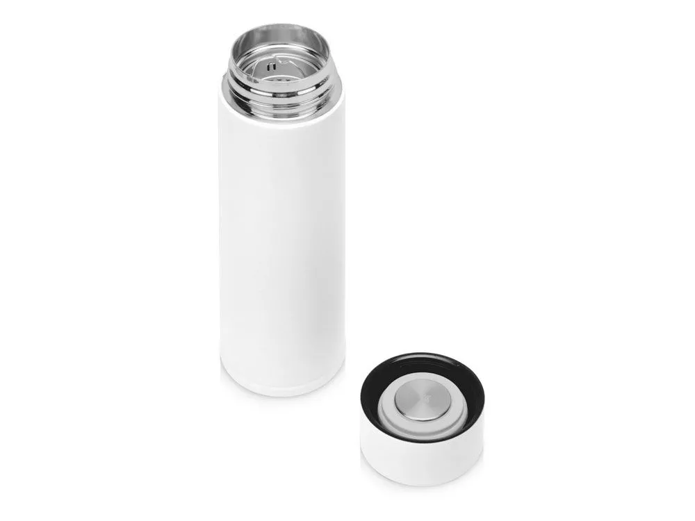 Вакуумный термос Module не только сохраняет ваши напитки горячими, но и показывает насколько они горячие! Уникальная особенность термоса - это сенсорный индикатор температуры, расположенный в крышке. Чтобы узнать температуру внутри термоса, достаточно прикоснуться к поверхности крышки. Внутренняя колба изготовлена из высококачественной стали марки SUS 316 с добавлением молибдена, что делает термос еще более устойчивым к коррозии*. Снаружи термос покрыт мягким прорезиненным покрытием soft touch, благодаря которому его приятно держать в руке. - Пищевая долговечная сталь марки SUS 316. - Сенсорный индикатор температуры. - Съемное ситечко. - Покрытие soft-touch. Элемент питания (CR2450) в крышке несъемный. Расчетное время работы 1000 дней или 80000 нажатий. * по сравнению с аналогами из 304 стали. Гравировка (CO2 лазер) (Без чернения) на данный товар осуществляется бесплатно. Оплачивается только настройка оборудования в размере 1000 рублей на весь тираж.