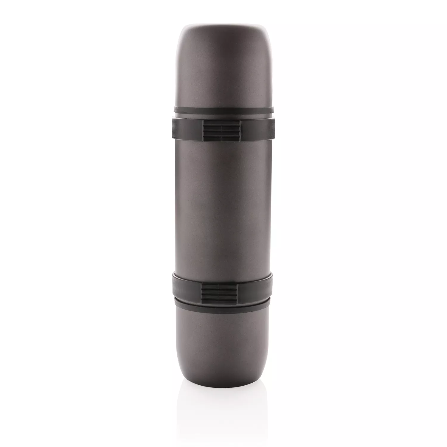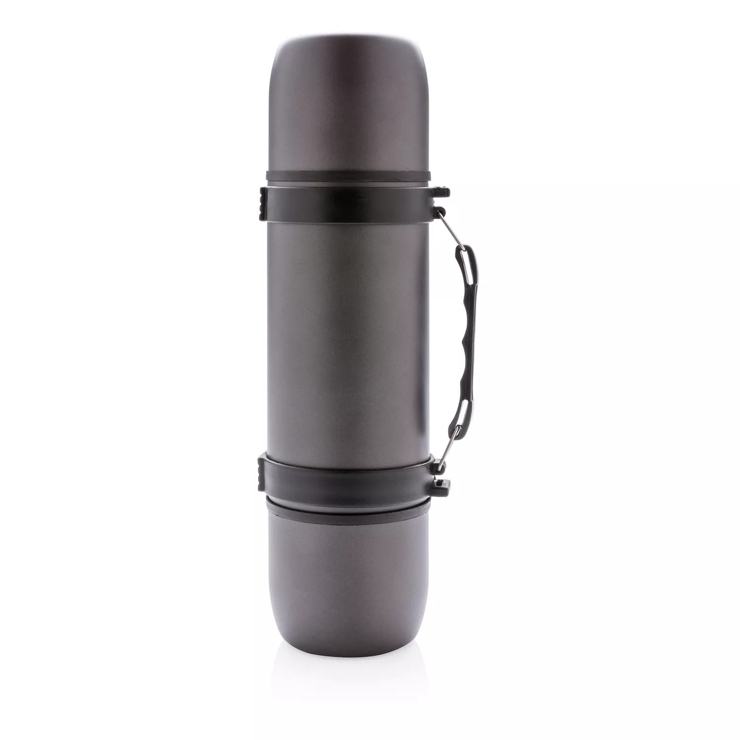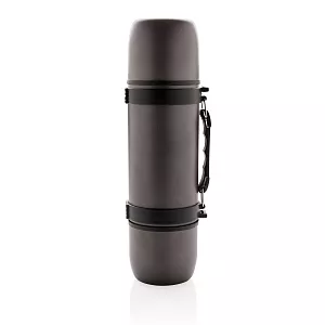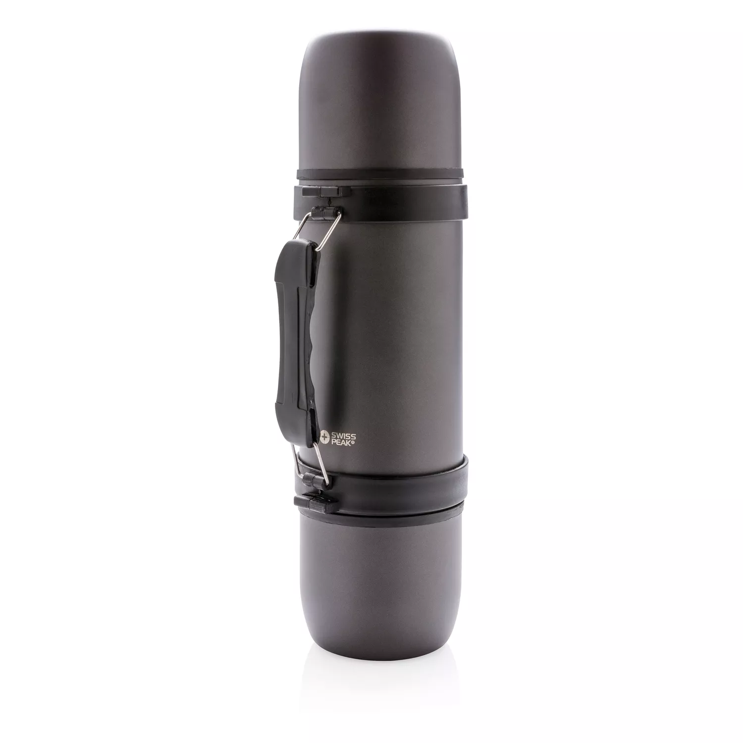 Вакуумный термос Swiss Peak, изготовленный из нержавеющей стали, надолго сохранит напиток горячим благодаря двойным металлическим стенкам. Удобная ручка и ремешок на плечо делают его идеальным компаньоном, куда бы вы ни отправились, а две чашки помогут поделиться любимым напитком. Не подходит для мытья в посудомоечной машине. Объем 700 мл.