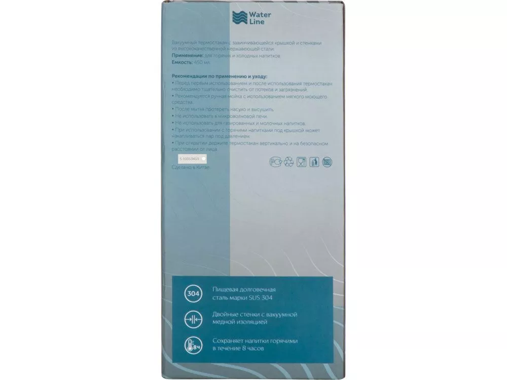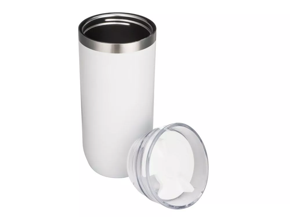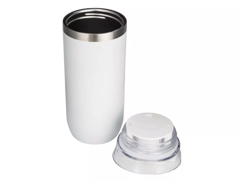Герметичный термостакан с завинчивающейся крышкой. Двустенная конструкция из нержавеющей стали с вакуумной изоляцией. Сохраняет напитки горячими в течение 8 часов и холодными в течение 24 часов. Объем составляет 450 мл. - Пищевая долговечная сталь марки SUS 304 - Двойные стенки с вакуумной изоляцией - Сохраняет напитки горячими в течение 8 часов Трафаретная печать круговая (1 цвет (белые изделия)) на данный товар осуществляется бесплатно. Оплачивается только настройка оборудования в размере 5100 рублей на весь тираж.