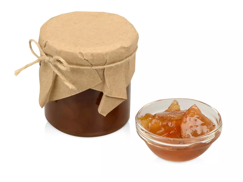 Яблочный или грушевый штрудель, покрытый сверху пудрой из корицы – это аромат Вены и старой Европы. Классическое сочетание ингредиентов украсит любой стол и станет приятным завершением романтического вечера. Сочетание фруктов и специй отлично подойдет для десерта или мороженного. Банка варенья обернута крафт-бумагой, на которую возможно сделать нанесение корпоративного логотипа.