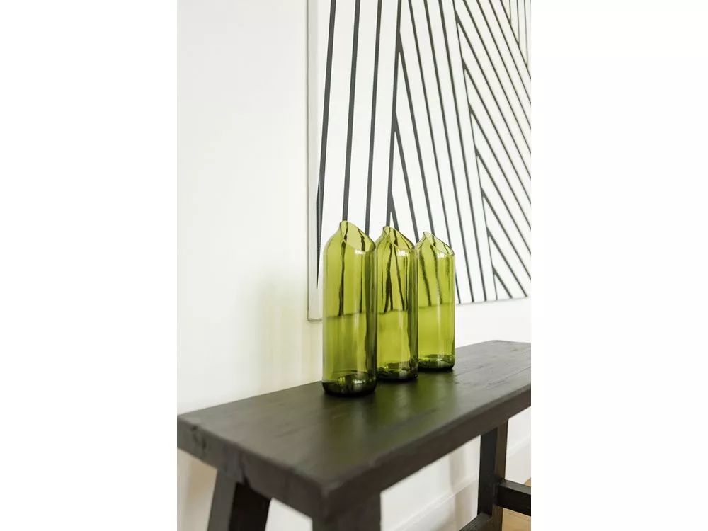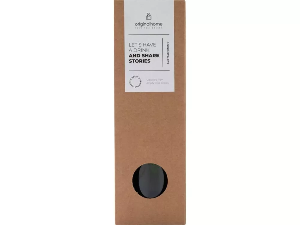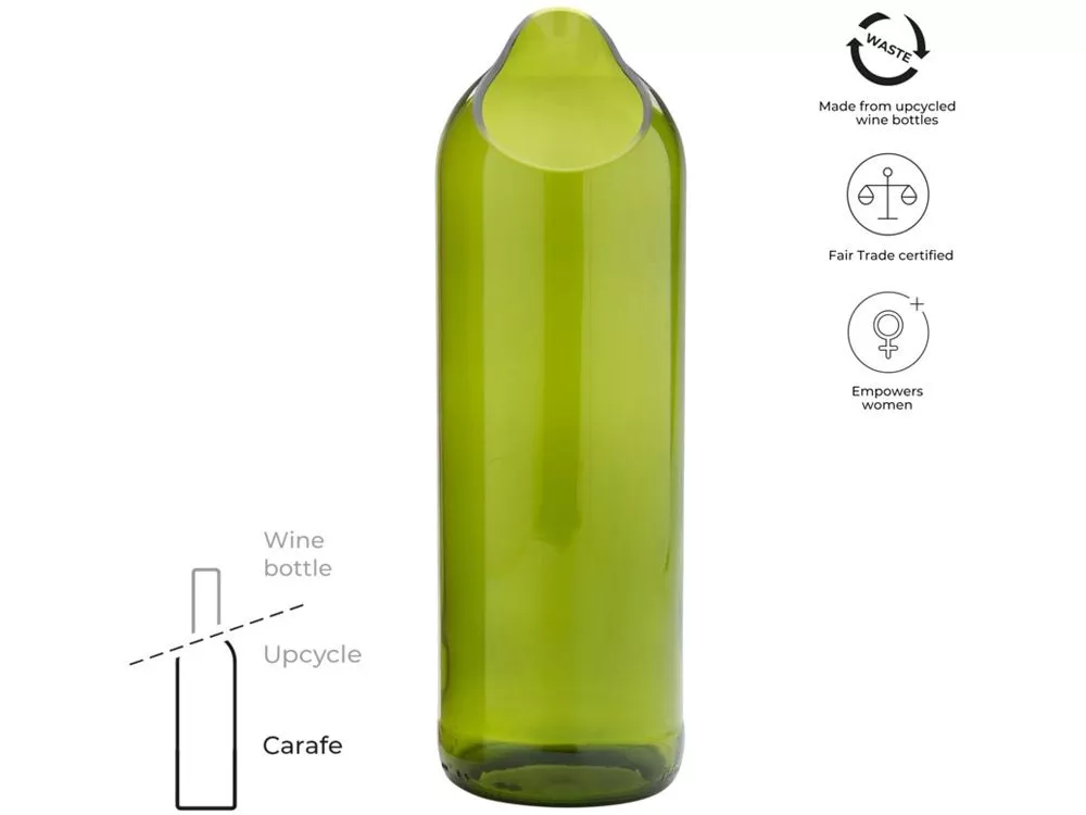 Ваза из переработанных винных бутылок объемом 750 мл. Эта ваза придает простоту и элегантность, а также является стильным аксессуаром для цветов. Поставляется в подарочной коробке. Переработанное стекло.
