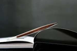 Корпус ручки выполнен из алюминия со вставками из дерева грецкого ореха. Коробка выполнена из дерева грецкого ореха, одновременно является настольной подставкой для ручки.