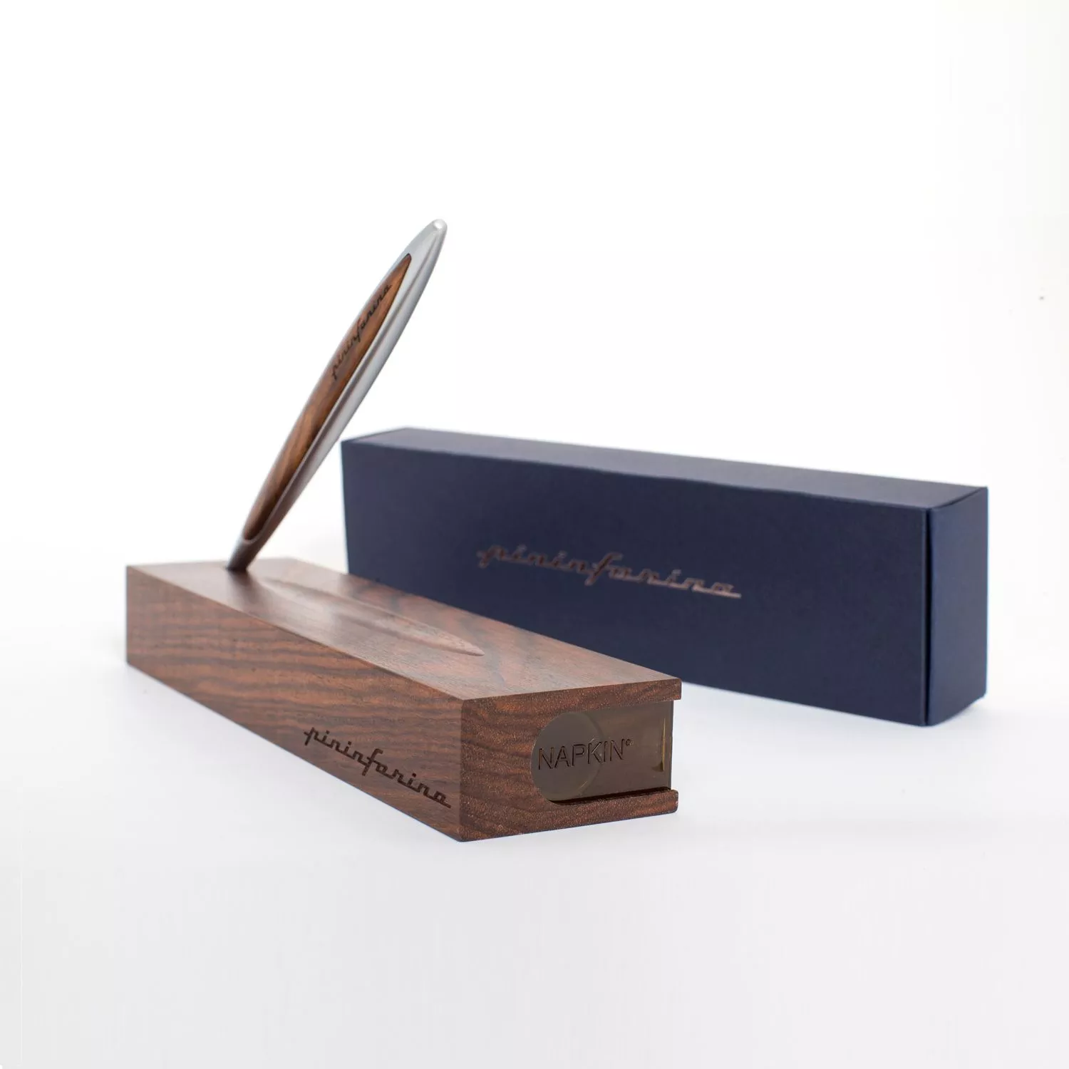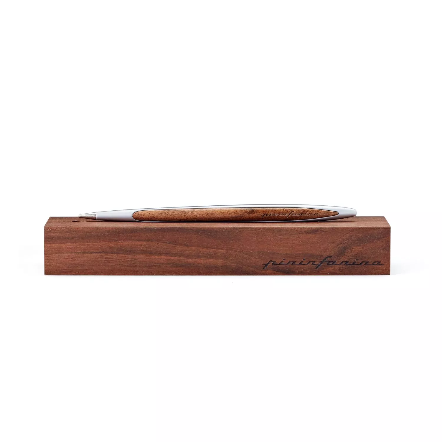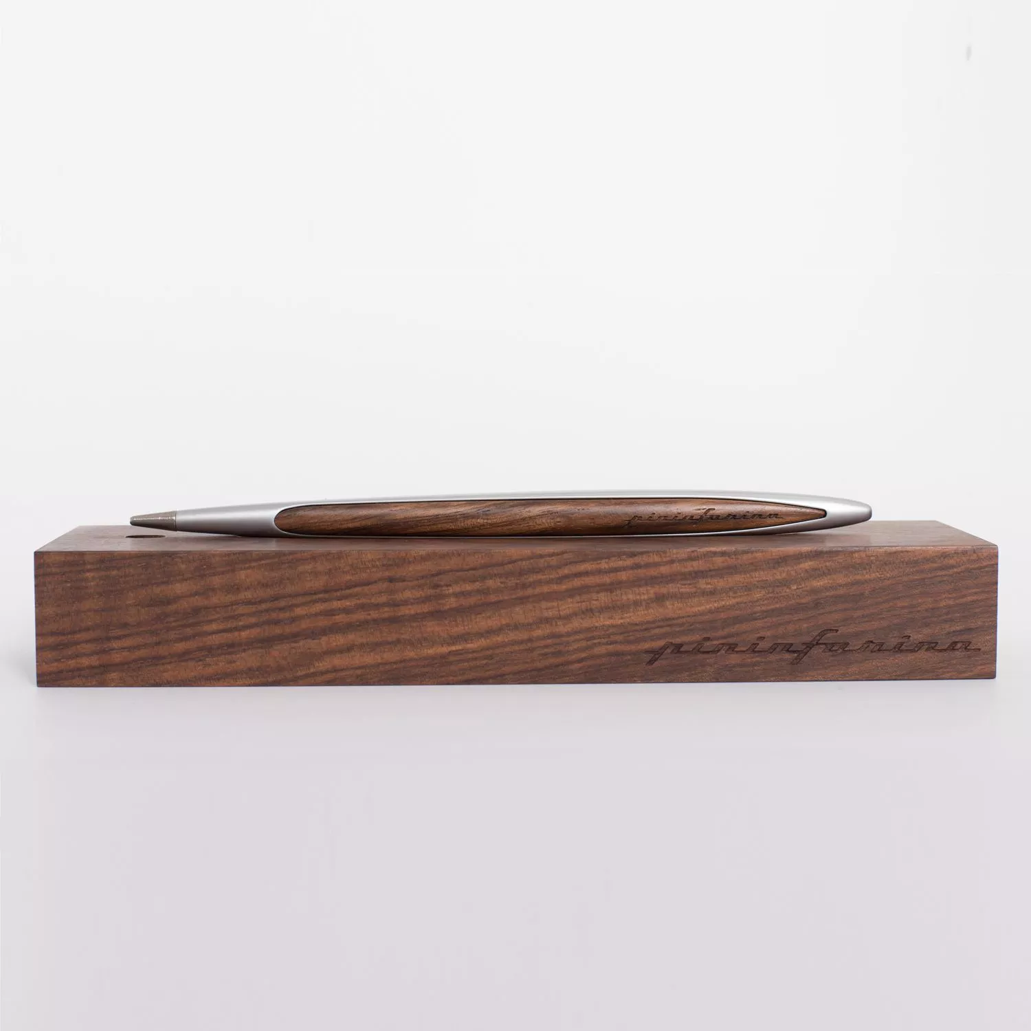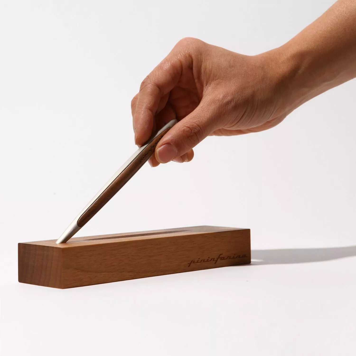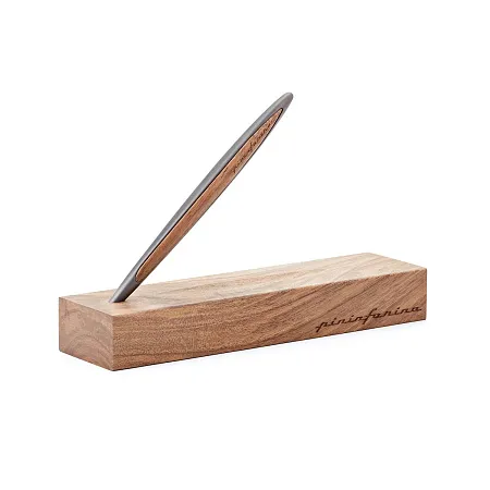 Флагманская ручка дизайнерского дома Pininfarina сочетает в себе роскошь и смелые дизайнерские решения. Pininfarina Cambiano - это объединение различных материалов, технологичность и элегантные линии. Вечная ручка имеет необычный пишущий узел в виде наконечника Ethergraf, который изготовлен из сплава металлов по запатентованной технологии. Он не содержит свинец и алюминий, производится вручную итальянскими мастерами и практически не расходуется за десятилетия использования. При соприкосновении с поверхностью бумаги, происходит химическая реакция и наконечник оставляет серебристый след, который напоминает цвет графитового карандаша, но обладает большей стойкостью. Идеально пишет на каменной бумаге. Корпус ручки выполнен из алюминия с вставками из дерева грецкого ореха. Вес ручки 39 гр, длина 16 см. Коробка выполнена из дерева грецкого ореха и одновременно является настольной подставкой для ручки.