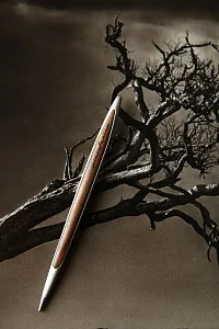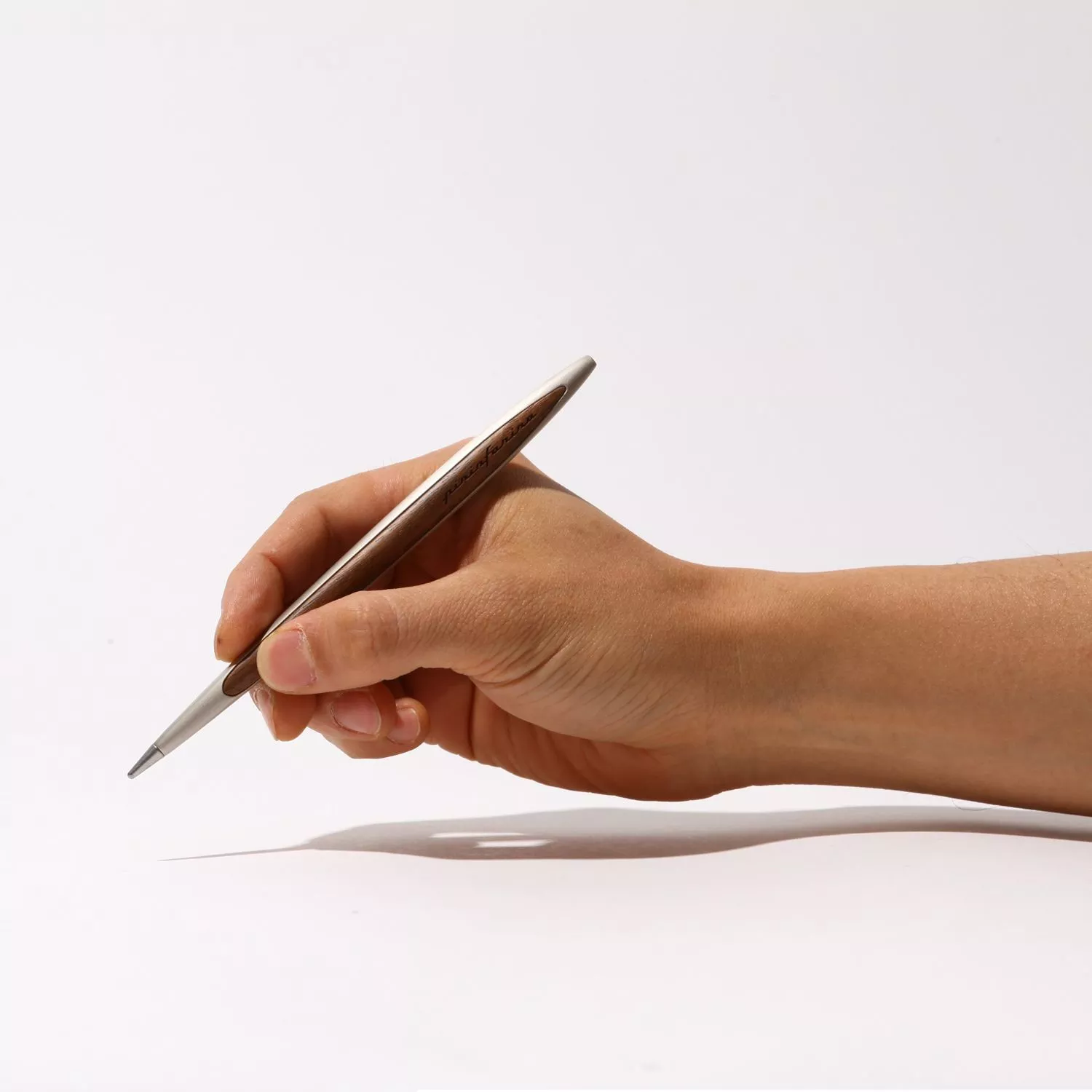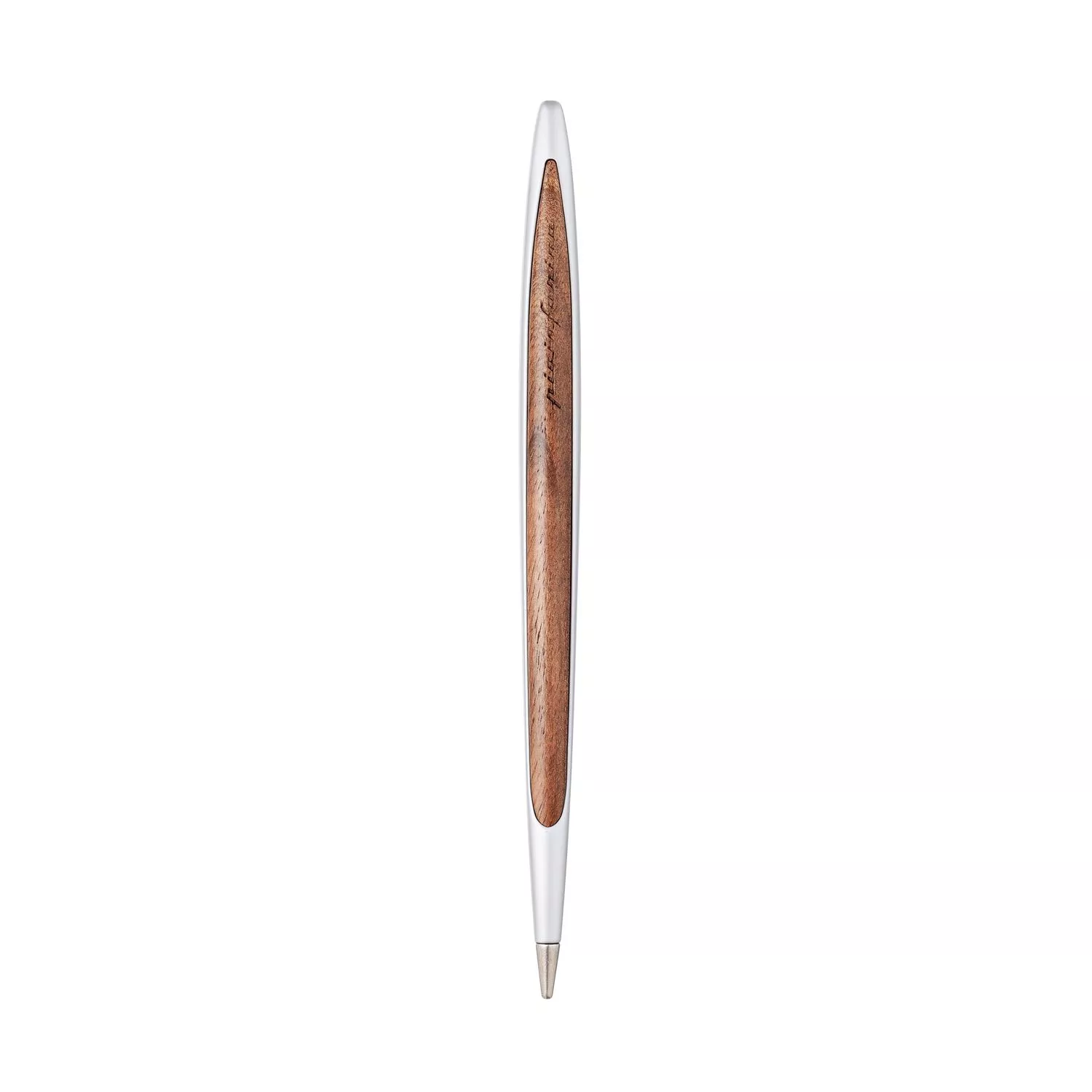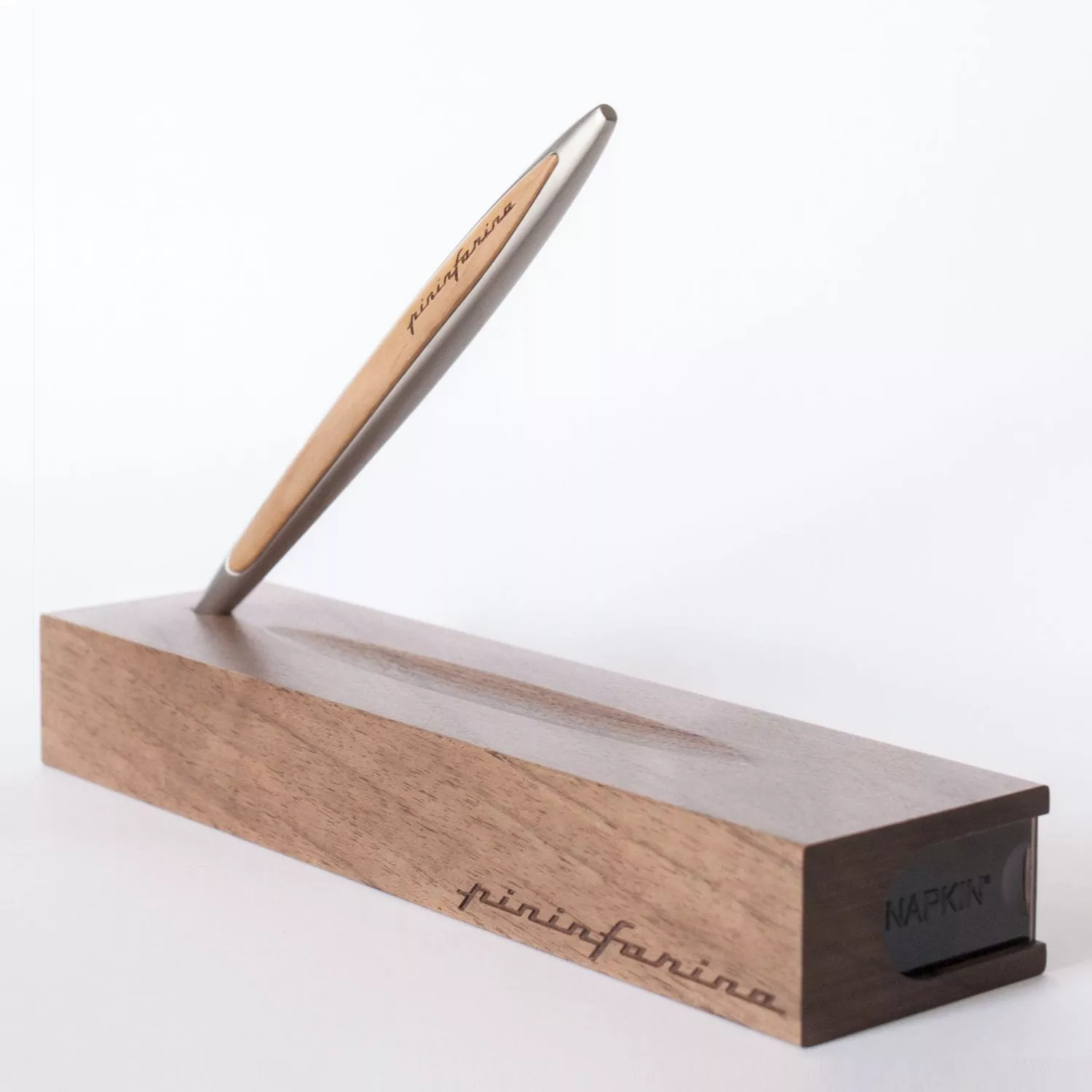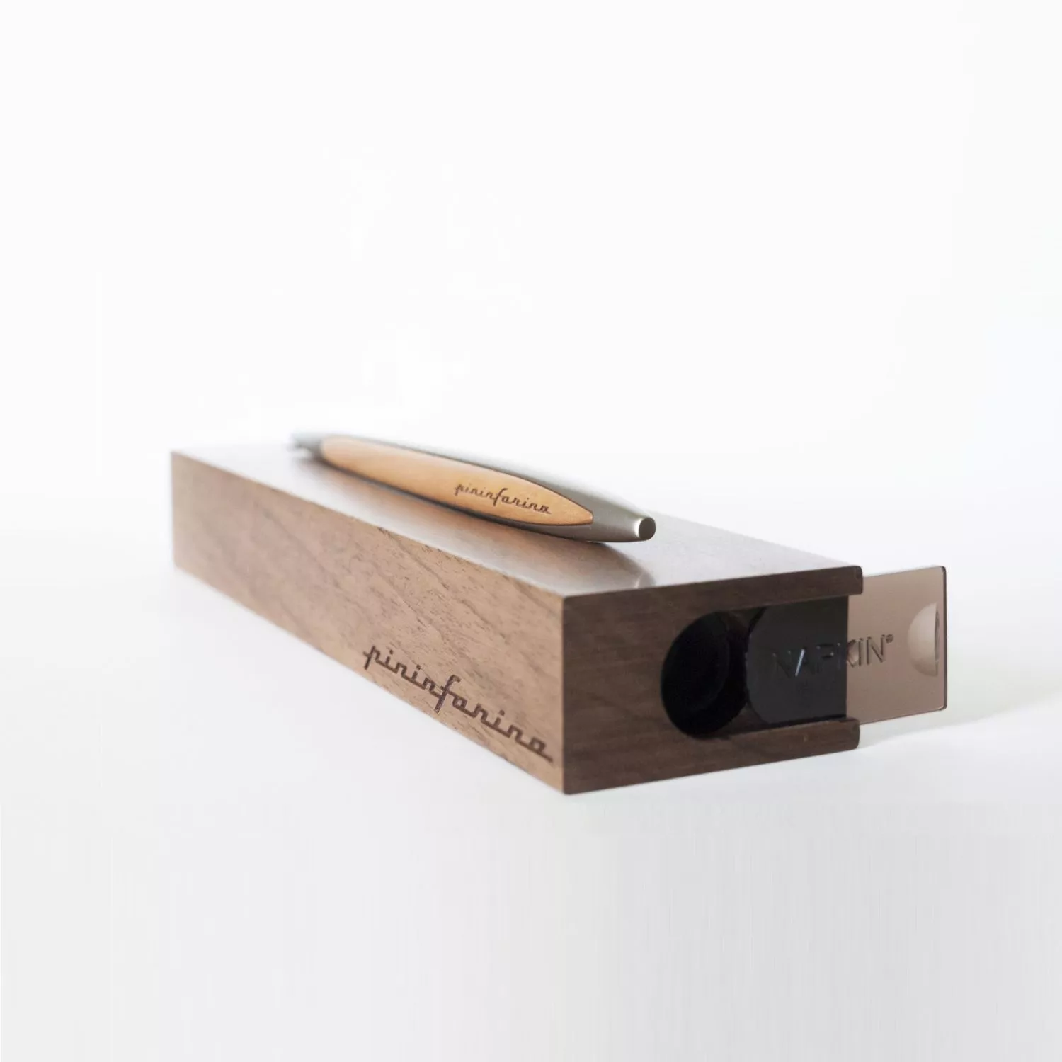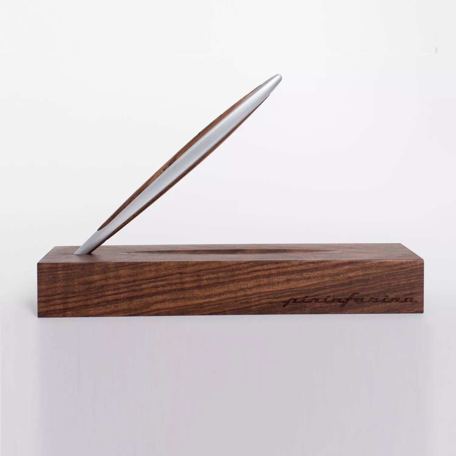 Флагманская ручка дизайнерского дома Pininfarina сочетает в себе роскошь и смелые дизайнерские решения. Pininfarina Cambiano - это объединение различных материалов, технологичность и элегантные линии. Вечная ручка имеет необычный пишущий узел в виде наконечника Ethergraf, который изготовлен из сплава металлов по запатентованной технологии. Он не содержит свинец и алюминий, производится вручную итальянскими мастерами и практически не расходуется за десятилетия использования. При соприкосновении с поверхностью бумаги, происходит химическая реакция и наконечник оставляет серебристый след, который напоминает цвет графитового карандаша, но обладает большей стойкостью. Идеально пишет на каменной бумаге. Корпус ручки выполнен из алюминия с вставками из дерева грецкого ореха. Вес ручки 39 гр, длина 16 см. Коробка выполнена из дерева грецкого ореха и одновременно является настольной подставкой для ручки.