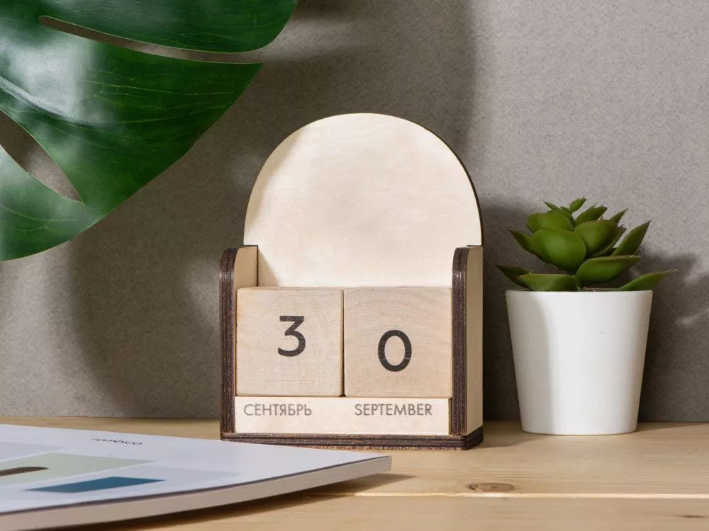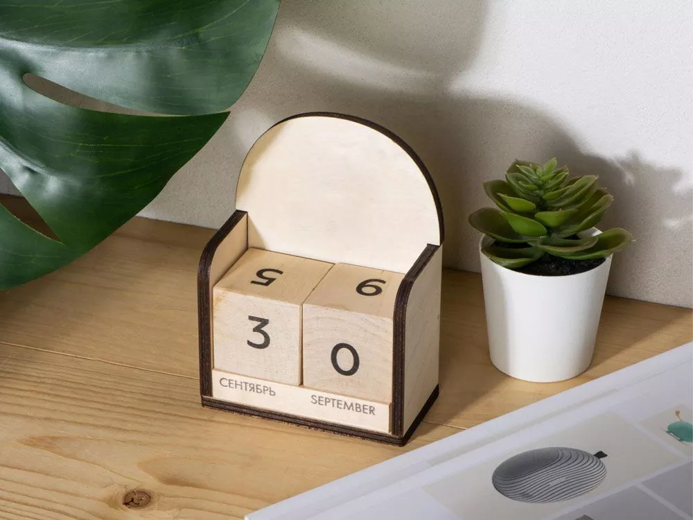 Деревянный настольный календарь — стильный, компактный и функциональный подарок. Такой сувенир никогда не потеряет своей актуальности, идеально впишется в любой интерьер и будет радовать обладателя долгие годы, а возможность нанесения сделает его уникальным. Гравировка (CO2 лазер) (Без чернения) на данный товар осуществляется бесплатно. Оплачивается только настройка оборудования в размере 950 рублей на весь тираж.