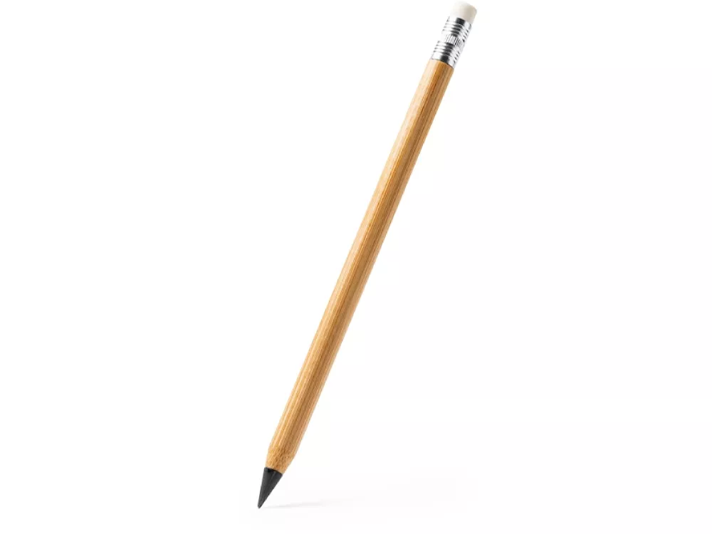 Вечный карандаш с ластиком с корпусом из бамбука. Свинцовый грифель для бесконечного письма. Нет необходимости точить.