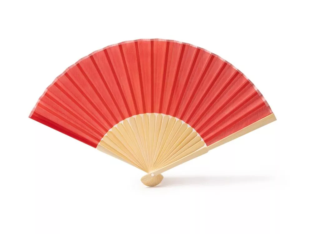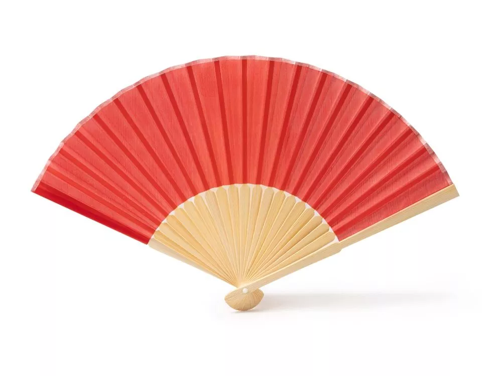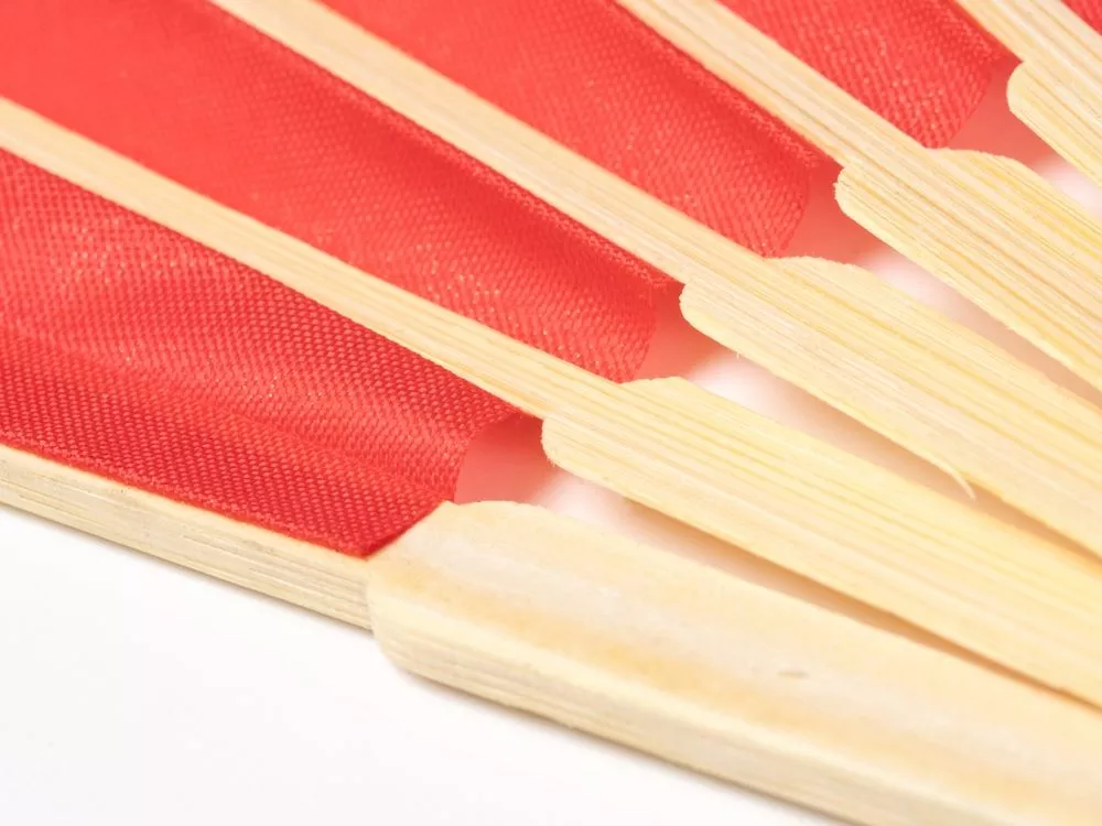 Веер с пластинами из бамбука и полотном из полиэстера.