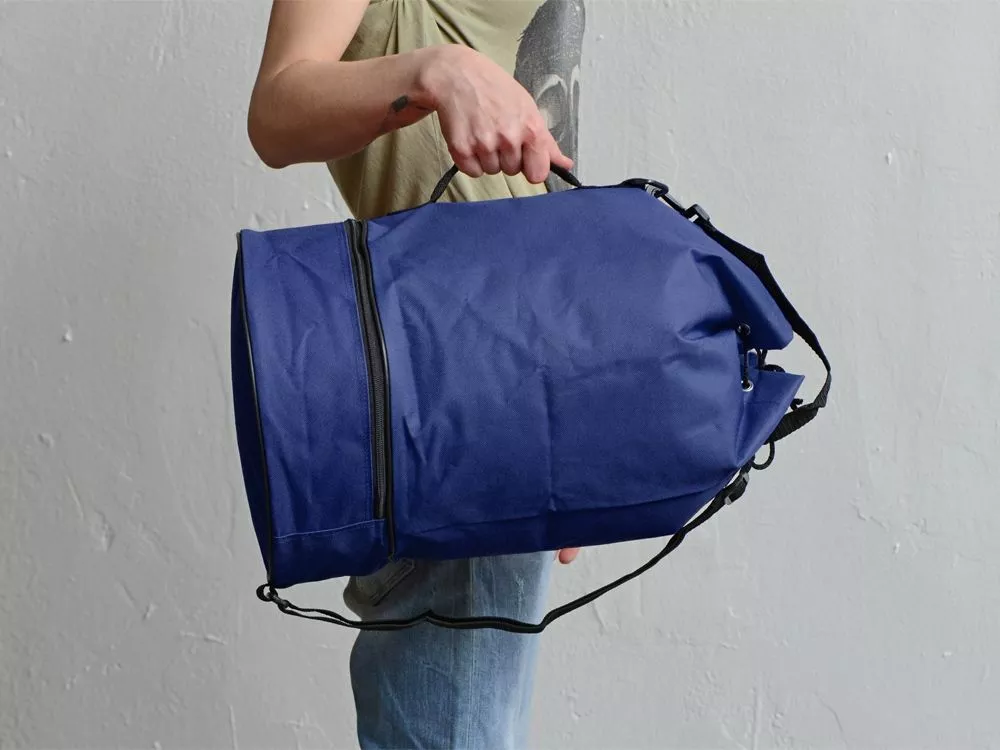 Вещмешок с водонепроницаемой пропиткой, кулиской, боковой ручкой и регулируемым плечевым ремнем. Отдельное нижнее отделение на молнии. Термотрансфер (1 цвет (цветные изделия)) на данный товар осуществляется бесплатно. Оплачивается только настройка оборудования в размере 10000 рублей на весь тираж.