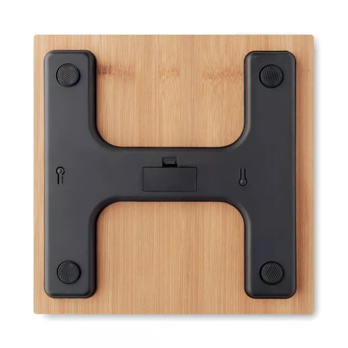 Электронные напольные весы из бамбука. Включает индикацию температуры в помещении в ºC. 2 батарейки типа ААА не входят в комплект. Максимальная нагрузка 180 кг.