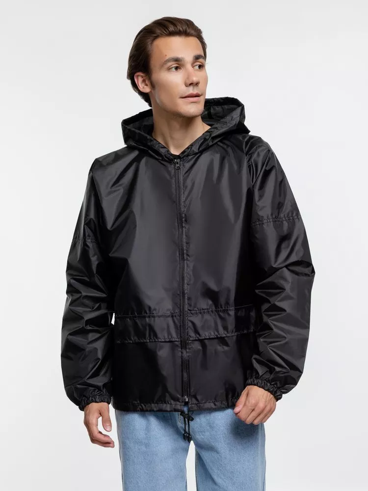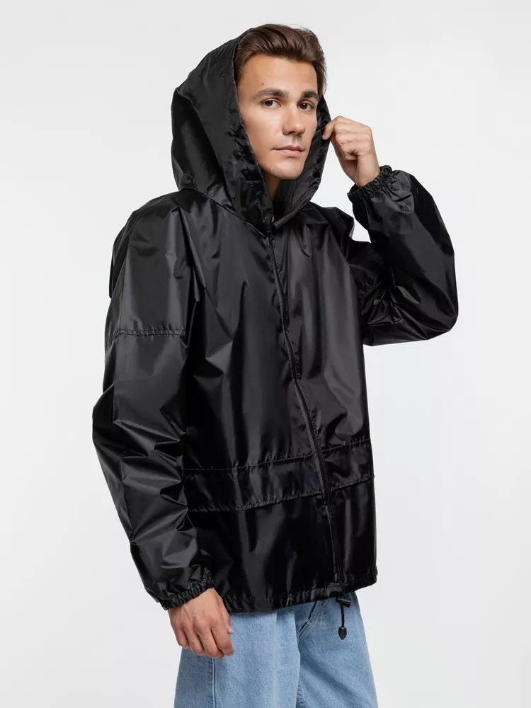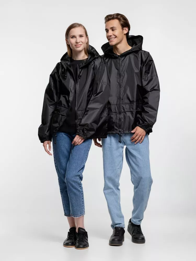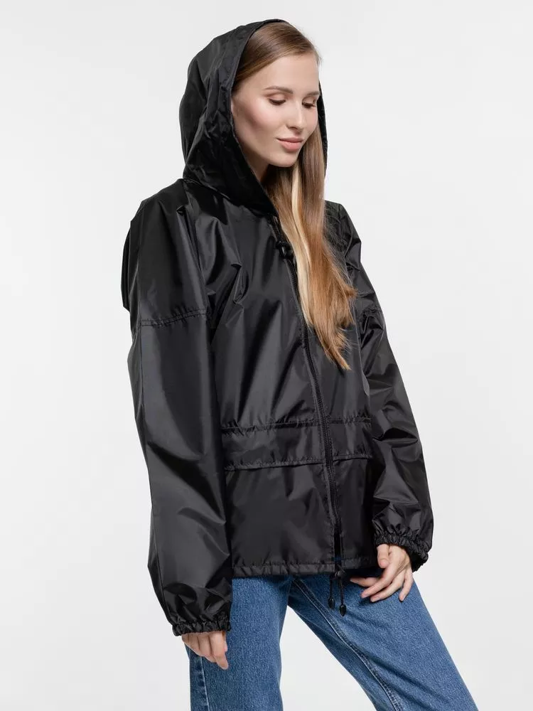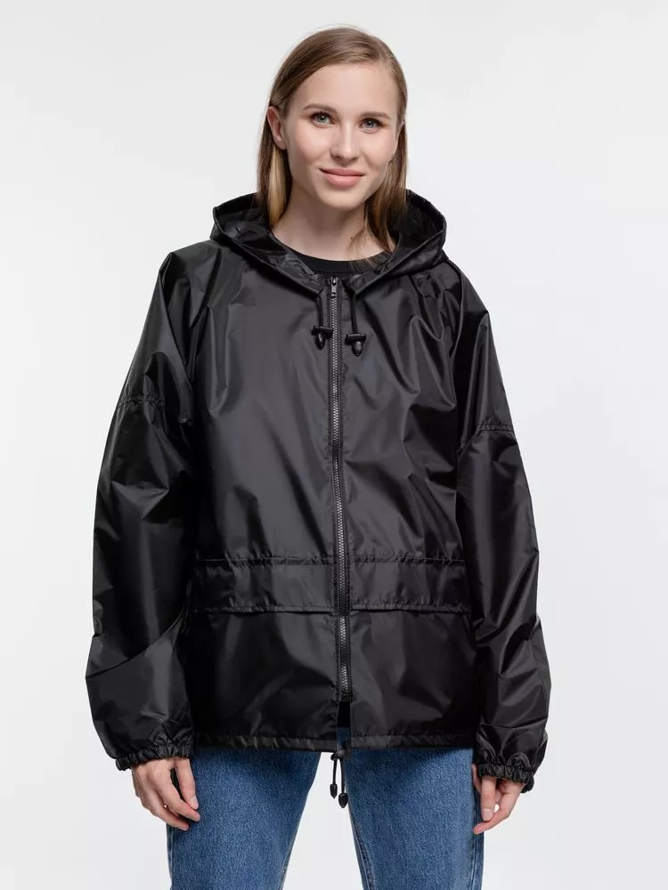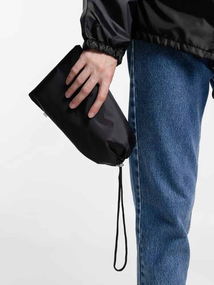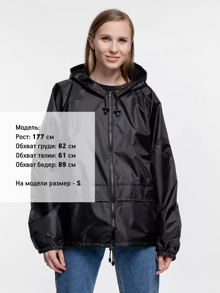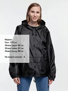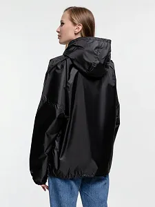 Ветровка свободного кроя из таффеты с влагозащитным покрытием. Складывается в мешочек — удобно брать с собой.