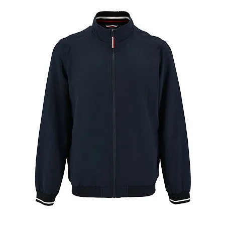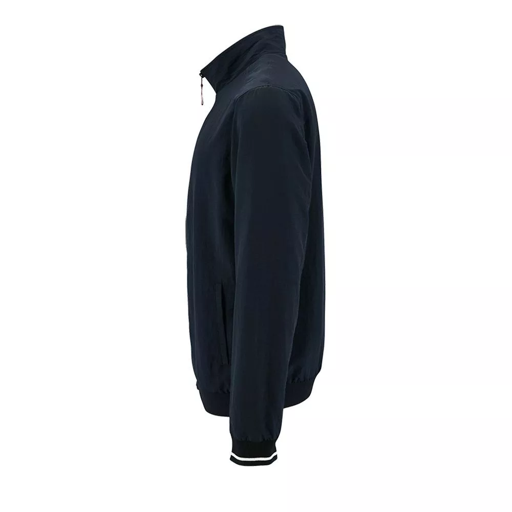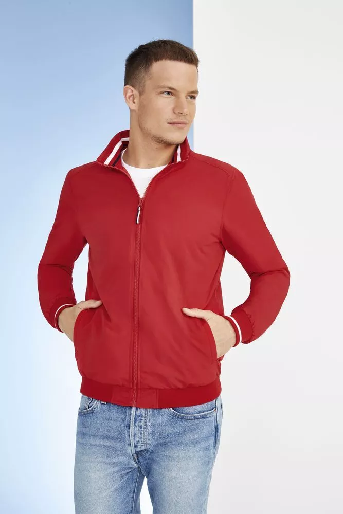 Ветровка унисекс на молнии с контрастной отделкой на манжетах и воротнике. Ворот, манжеты и низ изделия выполнены резинкой 1x1. Два наружных кармана, один внутренний.