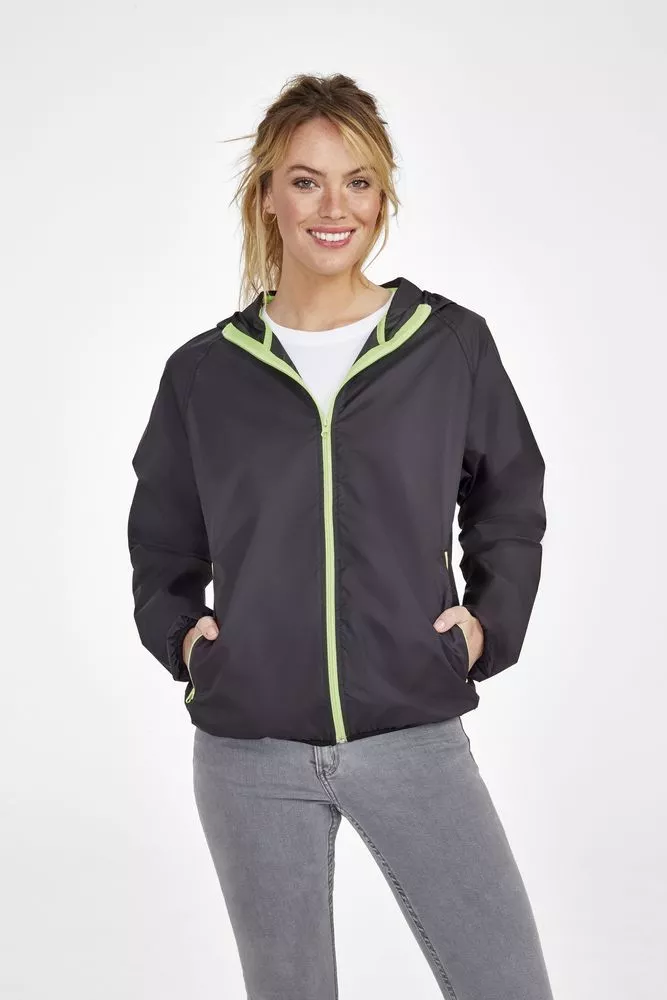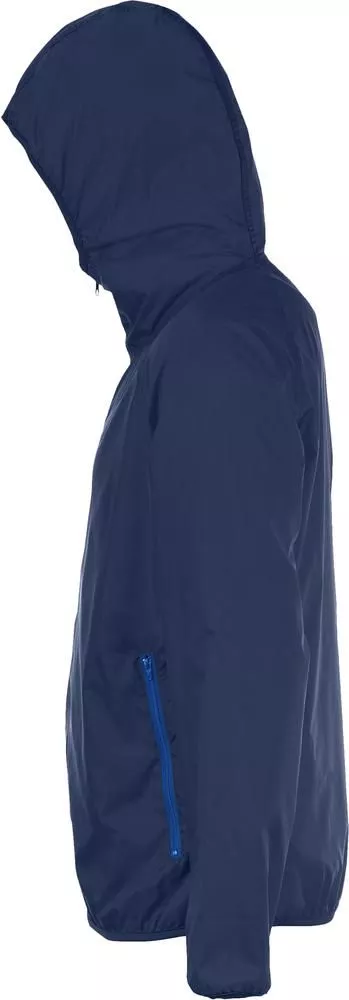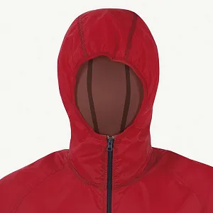 Молнии контрастного цвета. Манжеты, капюшон и низ ветровки на эластичной тесьме.