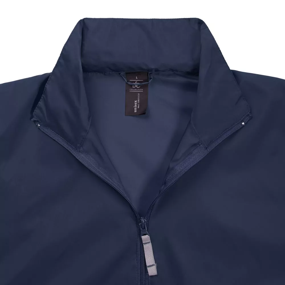 Ветровка на молнии с капюшоном и одним карманом с правой стороны.