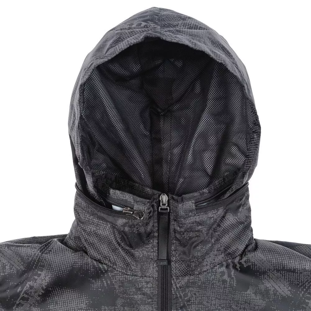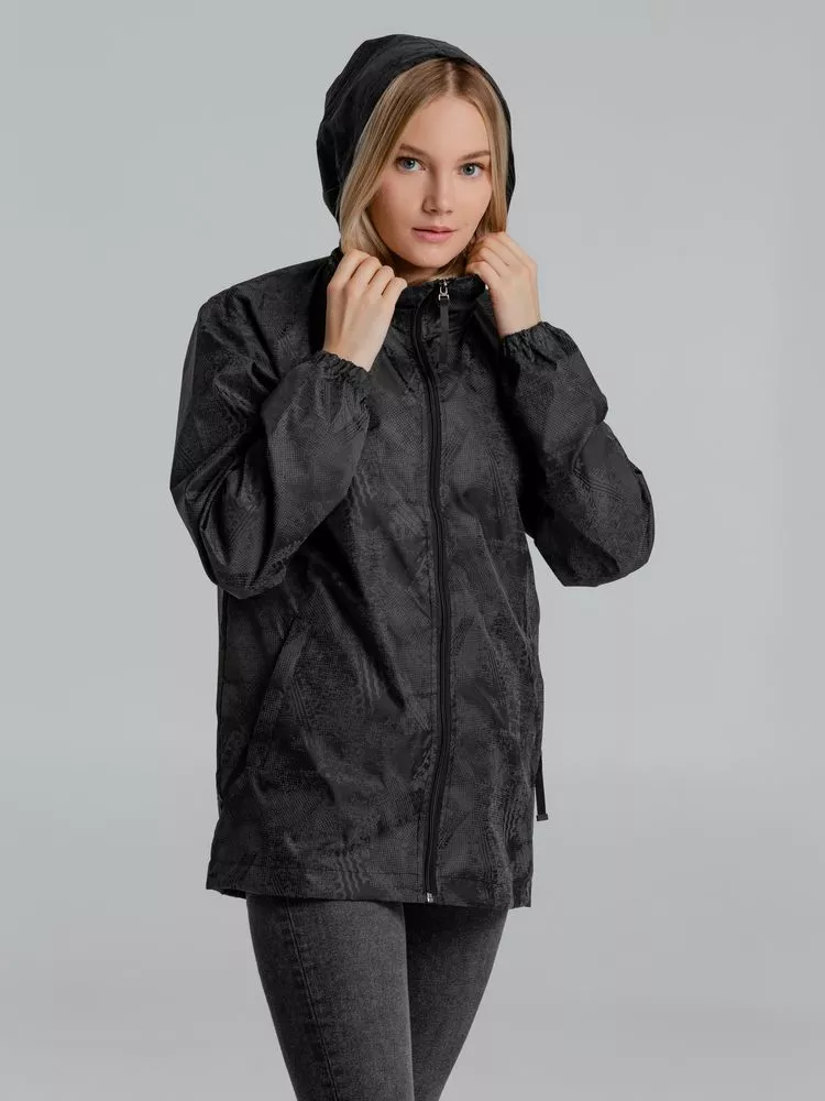 Ветровка с капюшоном из ткани с водоотталкивающей пропиткой и светоотражающим рисунком.