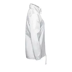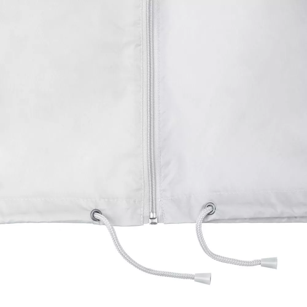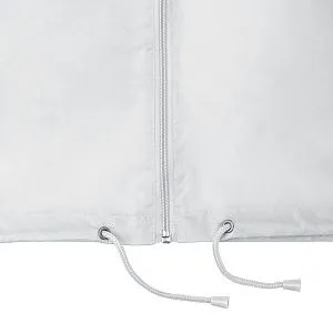 Капюшон убирается в воротник. Манжеты на резинке, утягивающий шнур по низу, два кармана на молнии.