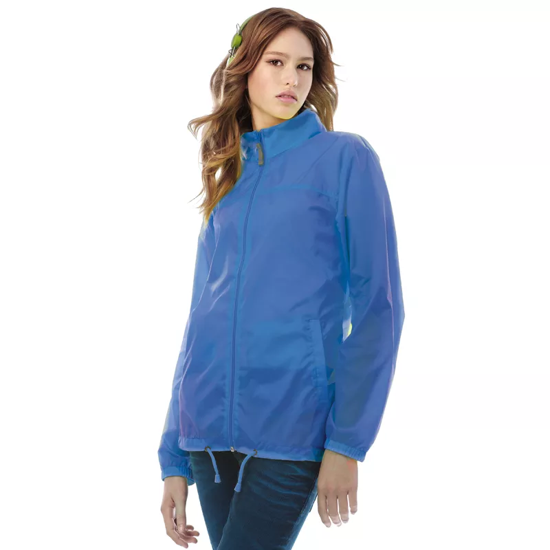 Ветровка женская с капюшоном (также капюшон складывается внутрь воротника - застежка на липучке); ветронепроницаемый, водоотталкивающий нейлон.