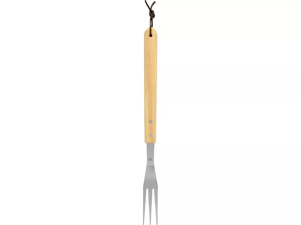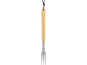 Вилка для барбекю BBQ - незаменимый предмет для приготовления мяса или каких-либо других продуктов на гриле, мангале или барбекю. Предмет, с помощью которого очень удобно переворачивать крупные куски мяса или рыбы или снимать их с огня. Ручка вилки выполнена из древесины дуба, что предотвращает от обжигания, а сама вилка из нержавеющей стали. Гравировка (Без чернения) на данный товар осуществляется бесплатно. Оплачивается только настройка оборудования в размере 500 рублей на весь тираж.