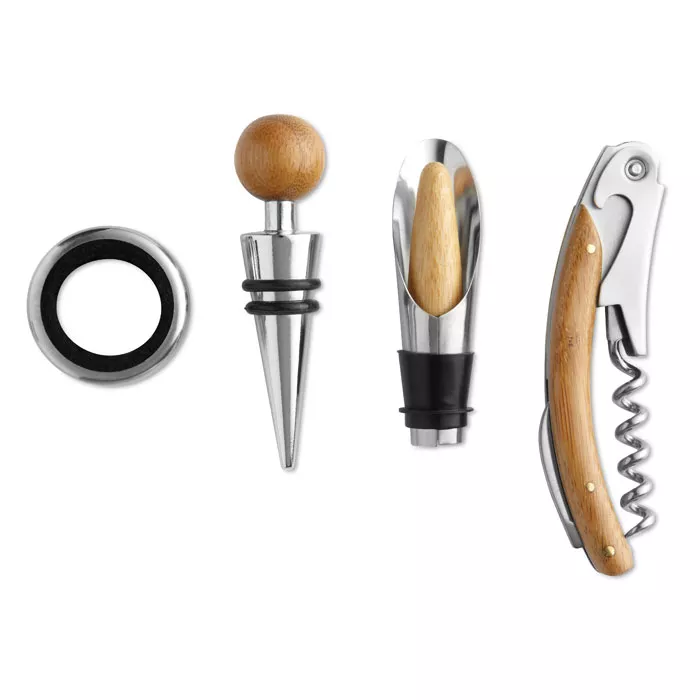 Набор винных инструментов в бамбуковой коробе для одной бутылки вина.