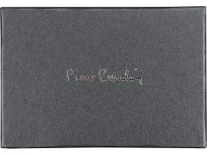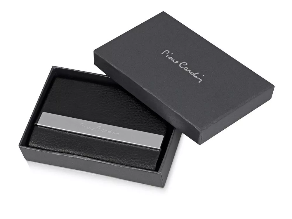 Визитница на магните выполнена из металла с искусственной кожей снаружи и черном бархатом внутри.