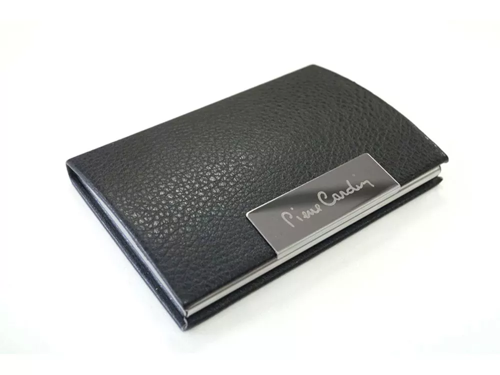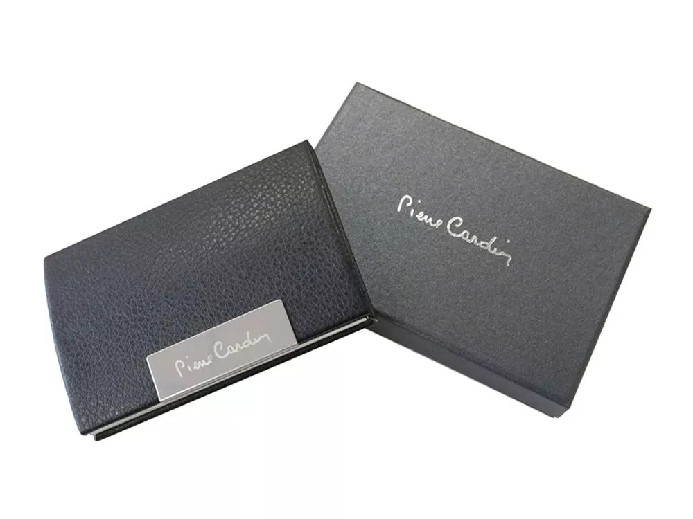 Визитница на магните выполнена из металла с искусственной кожей снаружи и черном бархатом внутри.