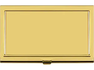 Стильная и элегантная металлическая визитница золотистого цвета подойдет в качестве презента как для мужчин, так и для женщин. На поверхности визитницы можно выгравировать поздравительную надпись или логотип организации.