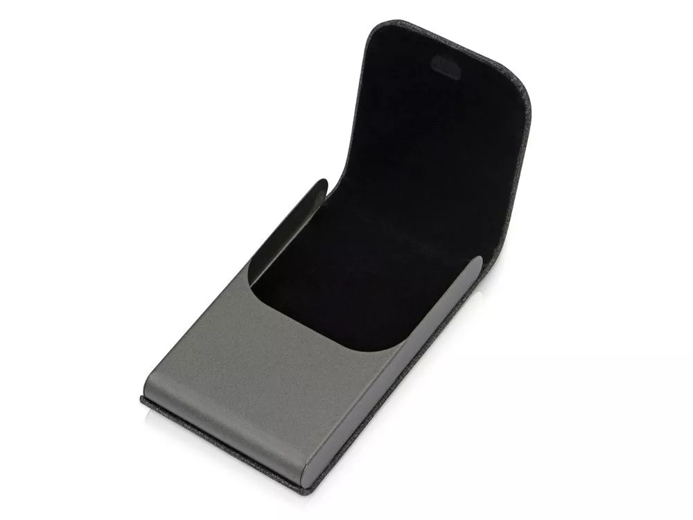 Визитница вмещает 35 визиток, надежно закрывается клапаном с магнитом. Гравировка (оптоволоконный лазер) (Без чернения) на данный товар осуществляется бесплатно. Оплачивается только настройка оборудования в размере 1000 рублей на весь тираж.