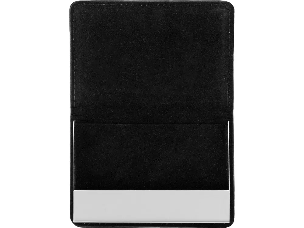 Лаконичный дизайн визитницы, выполненной из кожзама, нисколько не упрощает ее внешний вид, а, наоборот, дает хорошую возможность нанести фирменную символику или дарственную надпись на большой площади. На металлическую деталь визитницы также можно нанести изображение методом гравировки. Магнитный замок. Гравировка (CO2 лазер) (Без чернения) на данный товар осуществляется бесплатно. Оплачивается только настройка оборудования в размере 1000 рублей на весь тираж.