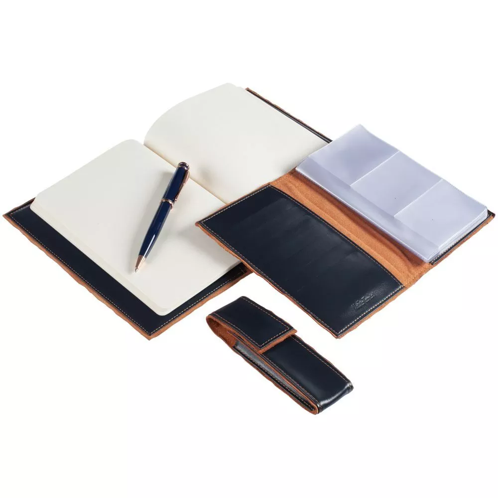 Изделия из линейки Palermo изготовлены из гладкой кожи глубокого синего цвета с контрастной отделкой из замши. Оформленные в едином стиле, они легко собираются в подарочные наборы.Все изделия линейки Palermo