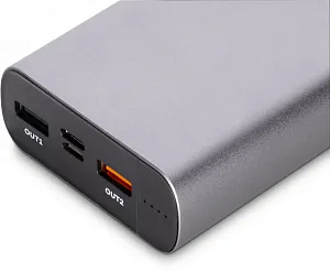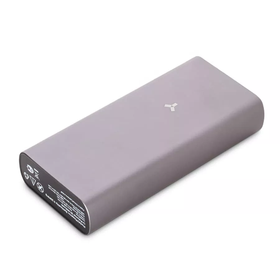Мощный powerbank в металлическом корпусе. Темно-серый алюминий устойчив к повреждениям и смотрится строго и надежно.Емкость аккумулятора — 20 000 мАч, это более 10 зарядок смартфона и 3–5 зарядок более крупных устройств, например, нетбуков и ноутбуков.Battleship II 20MPQ поддерживает функцию быстрой зарядки и способен сократить время зарядки смартфона или ноутбука в среднем на 50%.Два входных и три выходных порта решают почти все имеющиеся с различными типами проводов проблемы. Всегда под рукой будут входные порты USB и разъём для зарядки аккумулятора Type-C. Ёмкость батареи 20 000 мАч Тип батареи Литий-полимер Материал корпуса Алюминий Цвет корпуса Тёмно-серый Быстрая зарядка QC + PD Входные порты Micro-USB; Type-C Выходные порты USB 1.0; USB 2.0; Type-C Входное напряжение Ток Micro-USB:- 5 В 2.0 А;Type-C (PD и QC):- 5 В 3.0 А;- 9 В 2.0 А;- 12 В 1.5 А Выходное напряжение Ток USB:- 8 В 2.0 А;- 9 В 2.0 А;- 12 В 1.5 АType-C (PD и QC):- 5 В 3.0 А;- 9 В 2.0 А;- 12 В 1.5 А Время зарядки QC – 6 часов, обычная – 10 часов Количество циклов заряда Более 300 Размер устройства Д139 x В20 x Ш66 мм Вес устройства 439 г