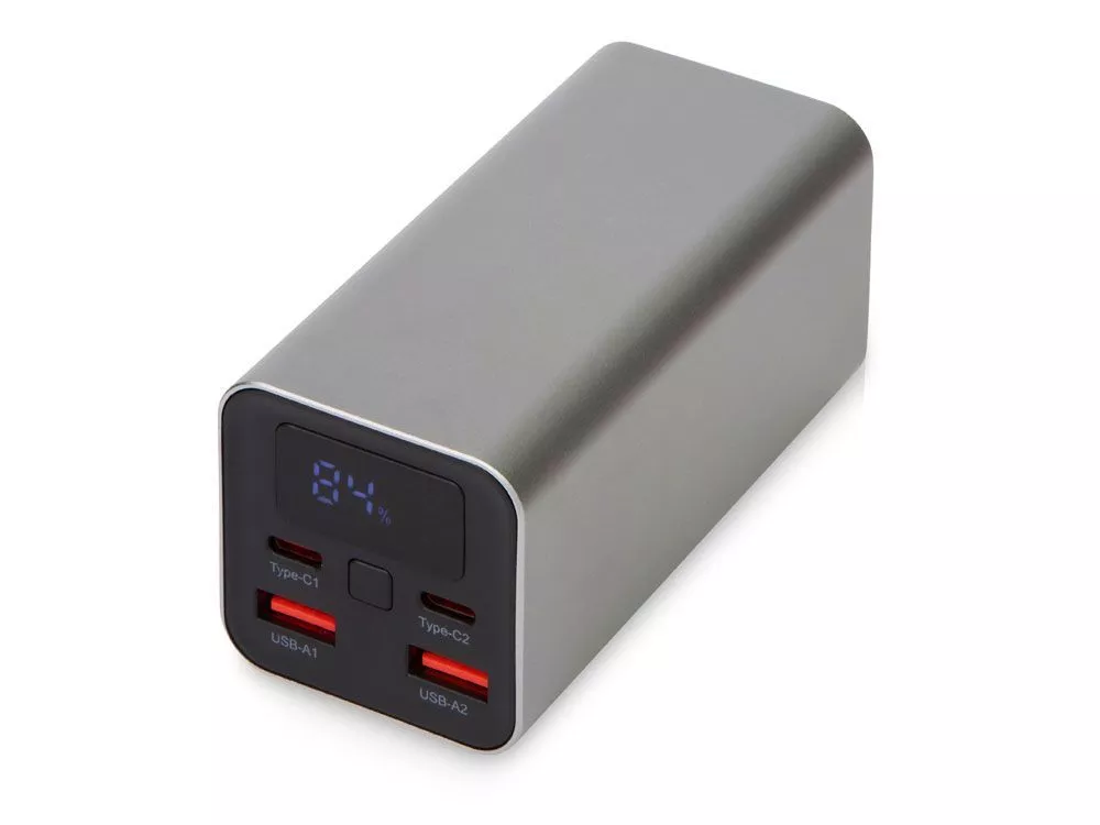 Надежный аккумулятор в металлическом корпусе, который снабжен многоуровневой защитой от скачков напряжения и коротких замыканий. Предназначен не только для ноутбуков*, но и может супер быстро зарядить планшеты и смартфоны (можно подключить до 4-х устройств). Уровень заряда отображается на дисплее, на котором также отображаются текущие напряжение и сила тока. Быструю зарядку теперь можно увидеть в прямом эфире. Кабель с поддержкой зарядки 65 Вт уже в комплекте. • быстрая зарядка в обе стороны через порты USB-C до 65 Вт • информативный цифровой дисплей с 3 показателями • кабель с поддержкой зарядки 65 Вт в комплекте • одновременная зарядка 4-х устройств • многоуровневая защита *Внимание! Ваш ноутбук должен поддерживать зарядку по разъему USB-C. Всегда проверяйте перед использованием! Гравировка (оптоволоконный лазер) (Без чернения) на данный товар осуществляется бесплатно. Оплачивается только настройка оборудования в размере 1000 рублей на весь тираж.