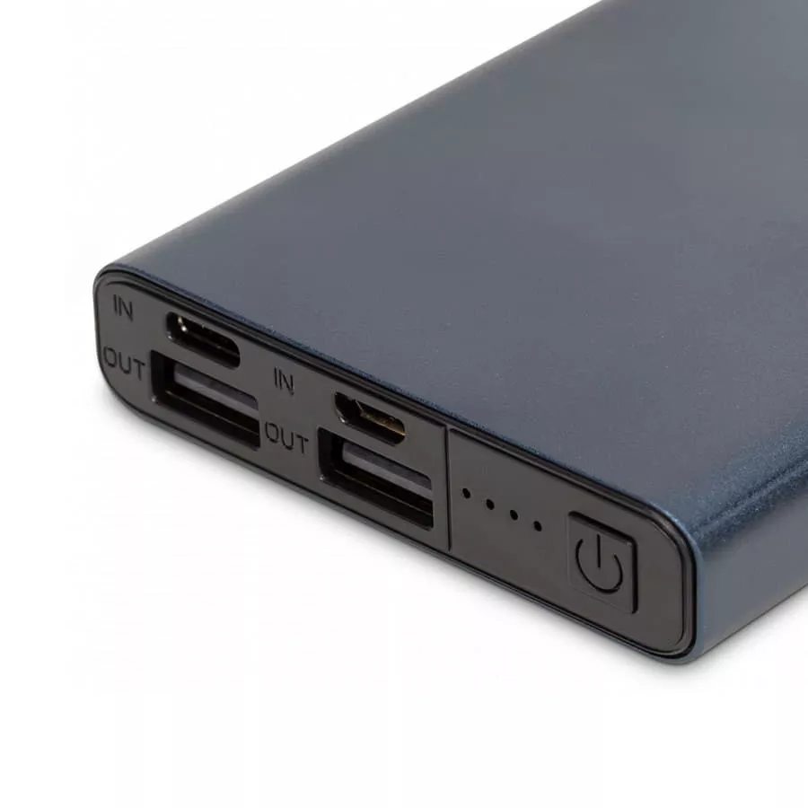 Powerbank в новом алюминиевом корпусеЭтот внешний аккумулятор надежно защищен алюминиевым корпусом. У пауэрбанка два порта — Type-C и Micro-USB, что делает его универсальным для различных гаджетов. Емкости 10 000 мА·ч вам хватит для подзарядки нескольких устройств. Девайс рассчитан на более чем 500 циклов. Полностью восстанавливает резерв за 5-6 часов.Несмотря на алюминиевый корпус толщина пауэрбанка менее 1,5 см, а вес всего 215 граммов. Износоустойчивый материал насыщенного синего цвета приятен на ощупь и не склонен к механическим повреждениям.