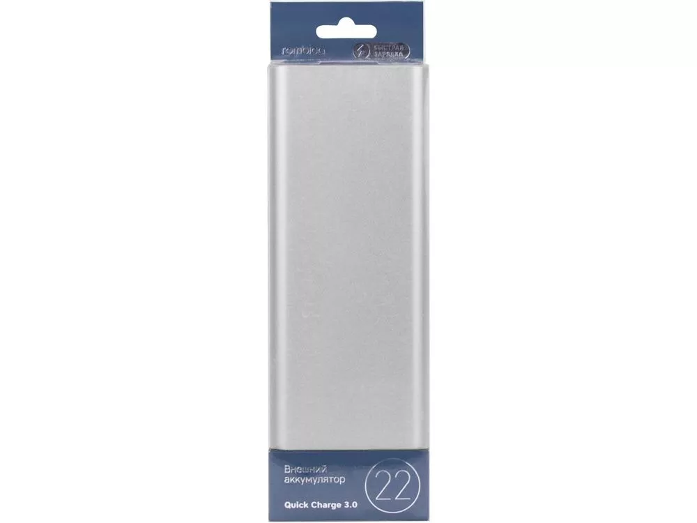 Внешний аккумулятор Rombica NEO AZ220S Quick. • Быстро заряжается и заряжает* • Заряди свой смартфон до двух раз быстрее!** • Зарядка от любого кабеля: micro-USB или Lightning 8 pin • Литий-полимерный аккумулятор • LED индикатор оставшегося заряда • Два USB выхода. Зарядка двух устройств одновременно • Множественная система защиты для безопасной зарядки устройств • Алюминиевый корпус * Для зарядки внешнего аккумулятора в быстром режиме требуется использовать зарядное устройство совместимое с Quick Charge 3.0 ** заряжаемое устройство должно поддерживать функцию быстрой зарядки Quick Charge 3.0. Гравировка (Без чернения) на данный товар осуществляется бесплатно. Оплачивается только настройка оборудования в размере 500 рублей на весь тираж.
