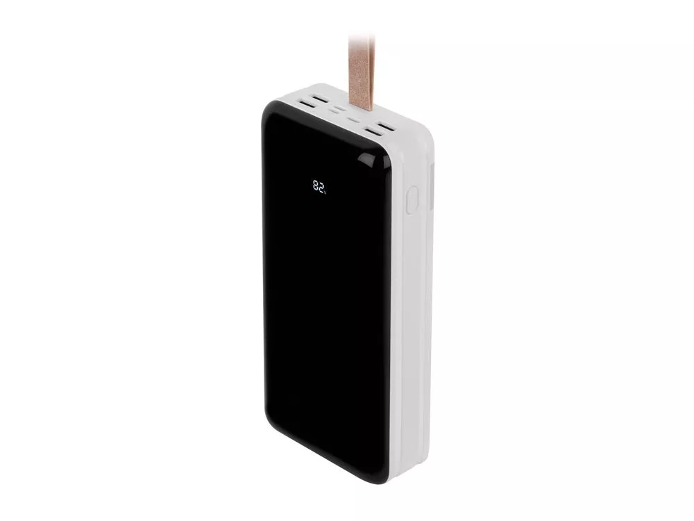 — большой объем 30000 мАч — цифровой LCD дисплей отображает процент заряда батареи — быстрая зарядка по протоколу Power Delivery и Quick Charge — зарядка до четырех устройств одновременно через порты USB и Type-C