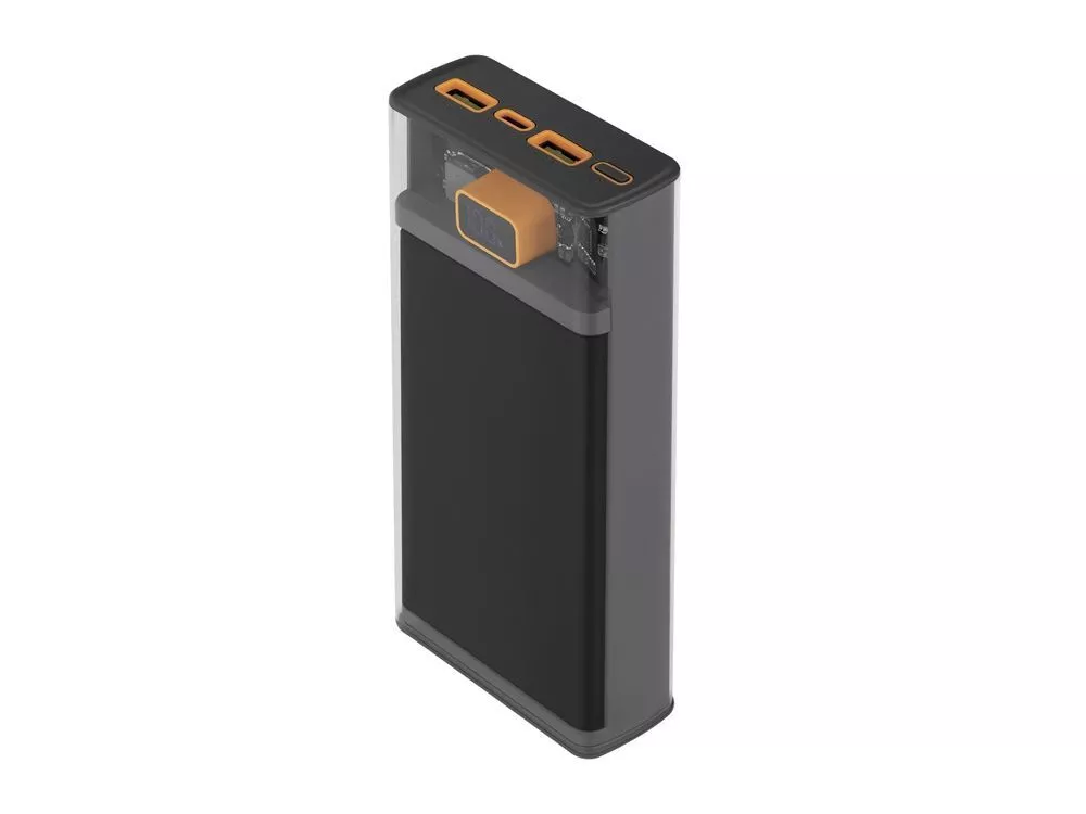 — Быстрая зарядка по протоколу Power Delivery и Quick Charge — Прозрачный дизайн — Цифровой LCD дисплей отображает процент заряда батареи — Зарядка до трех устройств одновременно через порты USB и Type-C