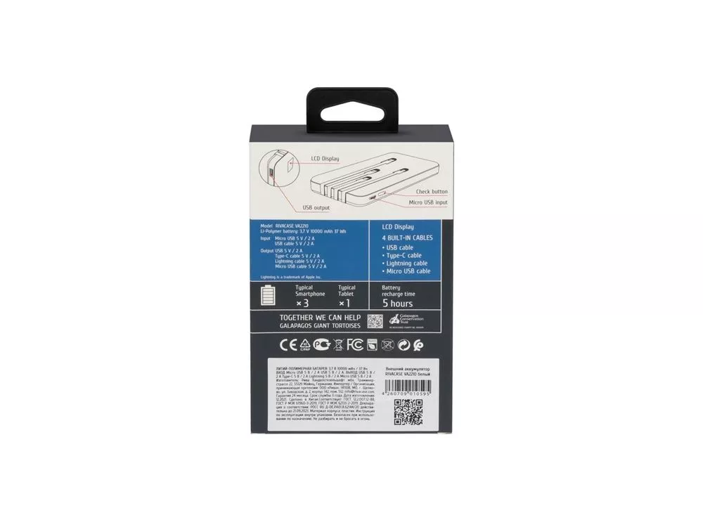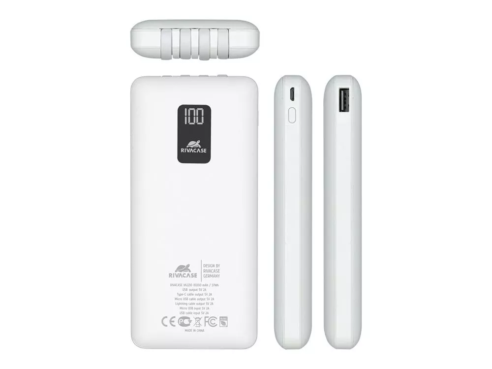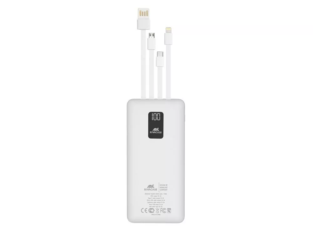 Внешний аккумулятор с дисплеем и встроенными кабелями VA2210, 10000 mAh